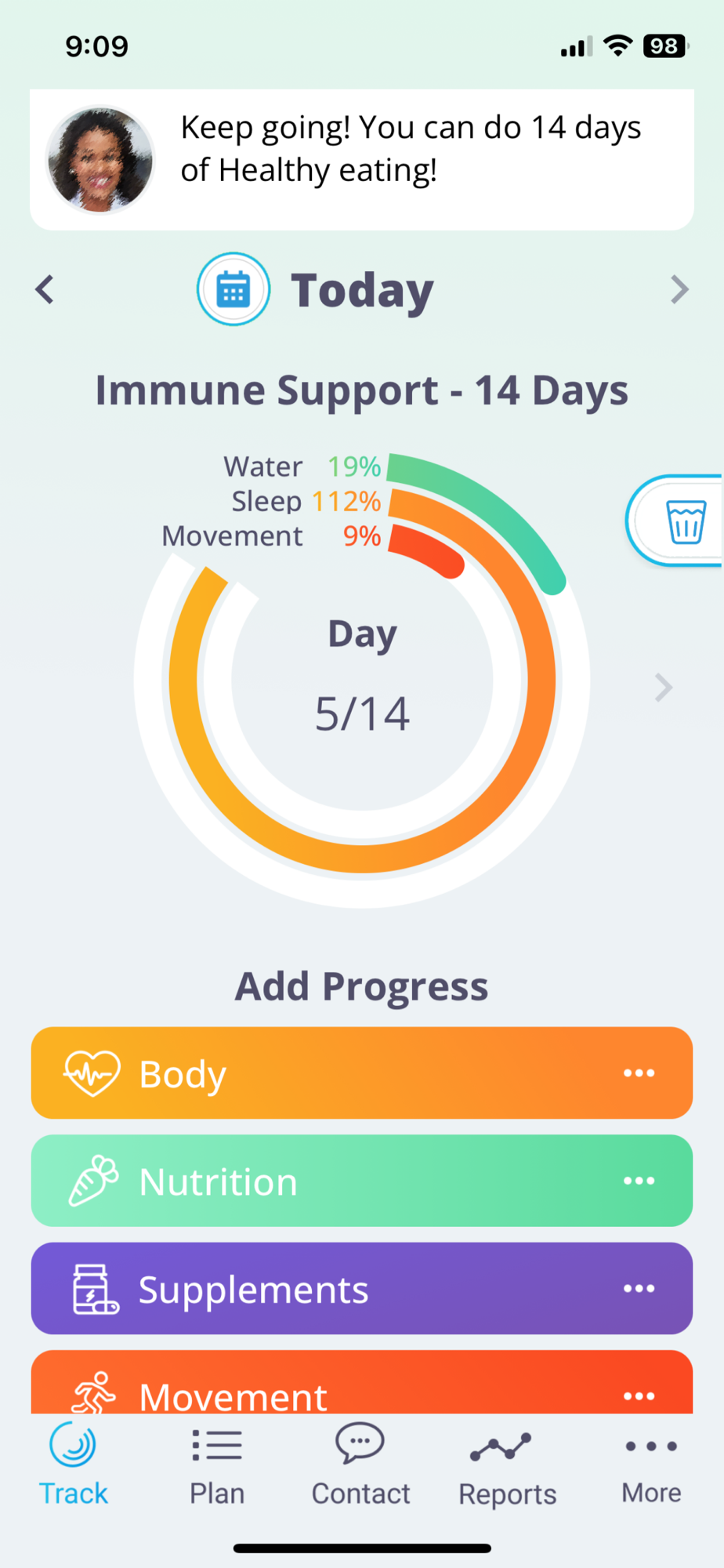 The app allows you to share your progress — your healthier food choices and activities, when and how often you are taking supplements, how much water you are drinking, how well you are sleeping, and so on — with your practitioner and gives them a way to make changes and recommendations for you. This accountability helps create the new habits and behaviors that lead to better health.