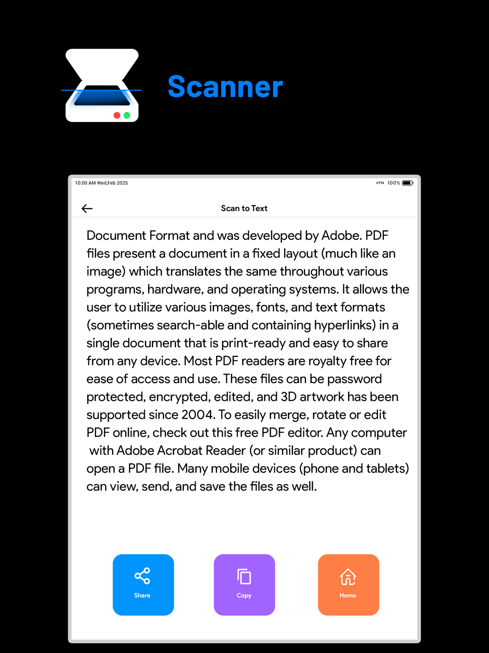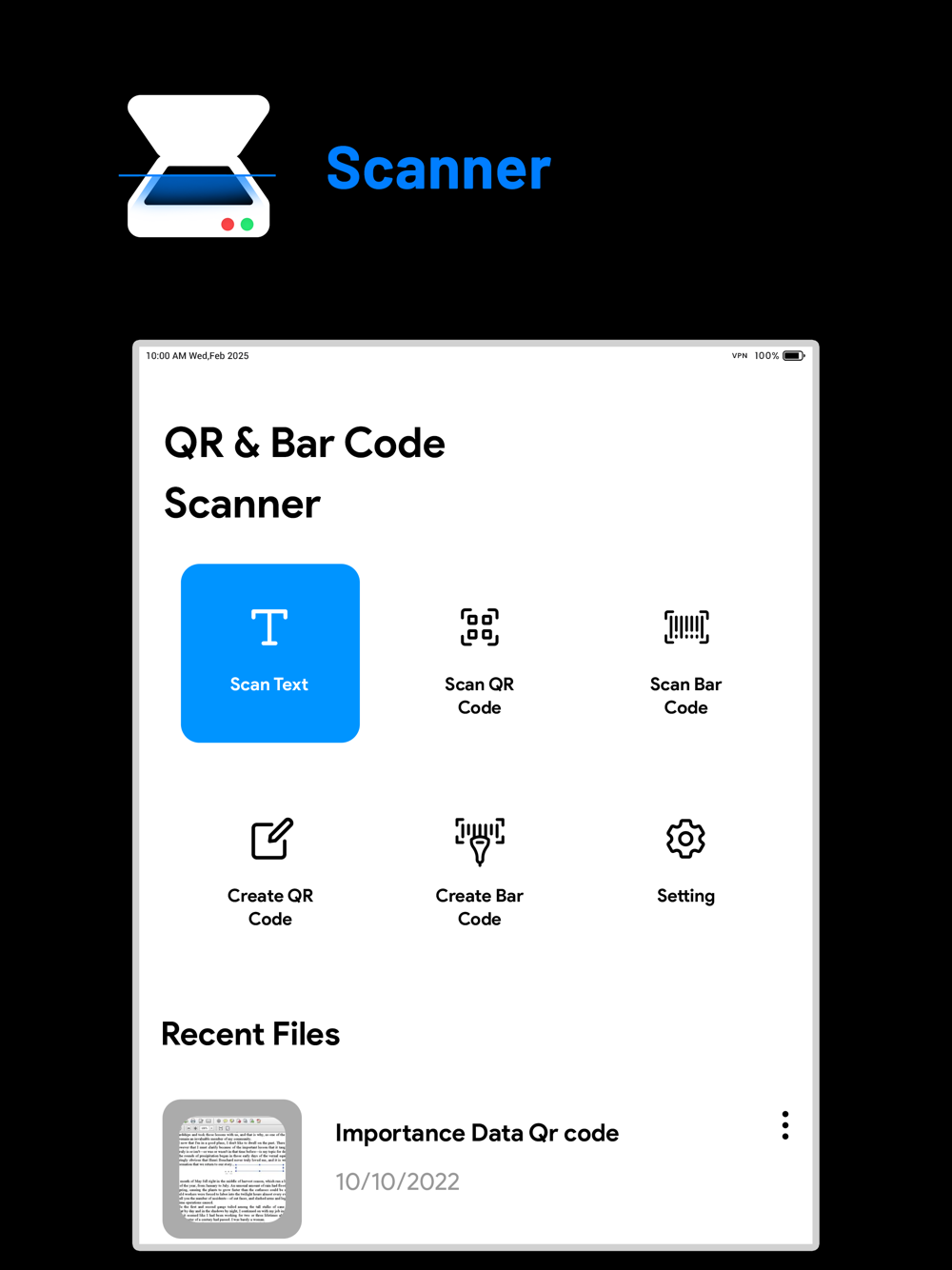 With All Scanner : Scan To Text you can easily scan any text or QR Code Or Bar Code within just a second.