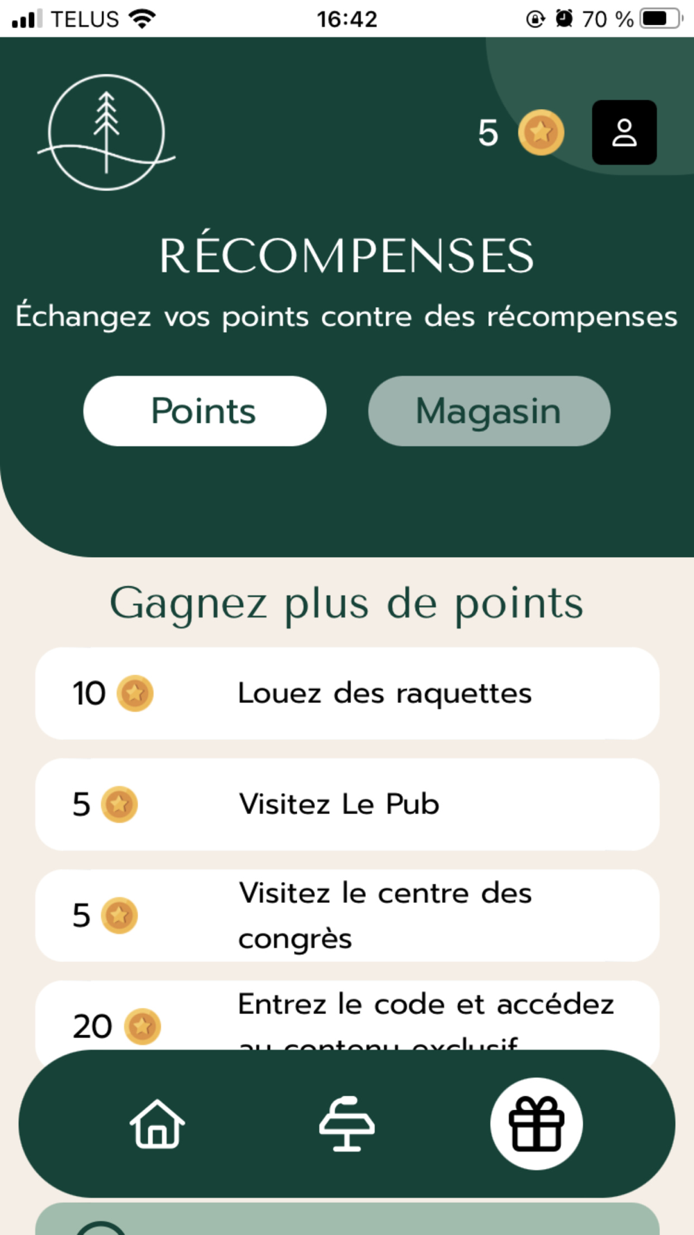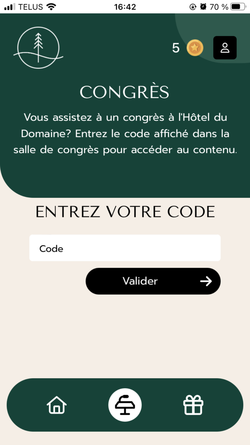 The application only works when you are on the Hotel du Domaine website to ensure that only people with access to the complex can earn points and use them to purchase offers.