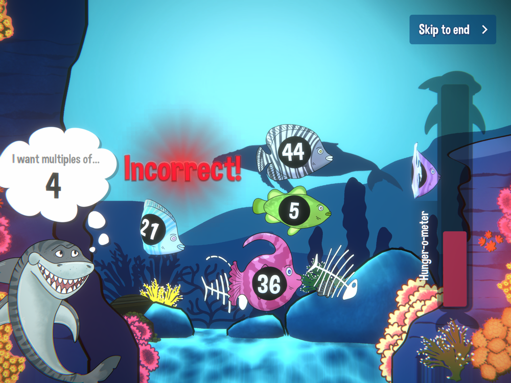 The level of difficulty dictates the amount of fish that are on the screen at one time and how many of those fish will be the correct answer; as well as this, on Extreme mode the fish have a little extra speed behind their fins.
