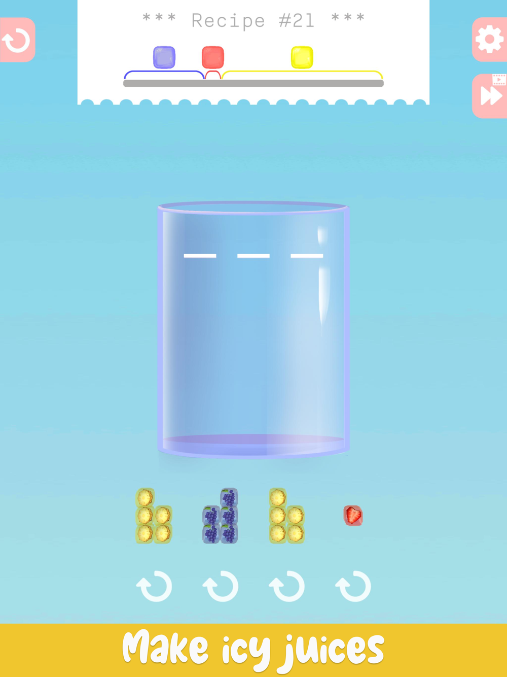 Follow the receipts to fill your glass with fruit ice blocks and make delicious ice-cold juice!