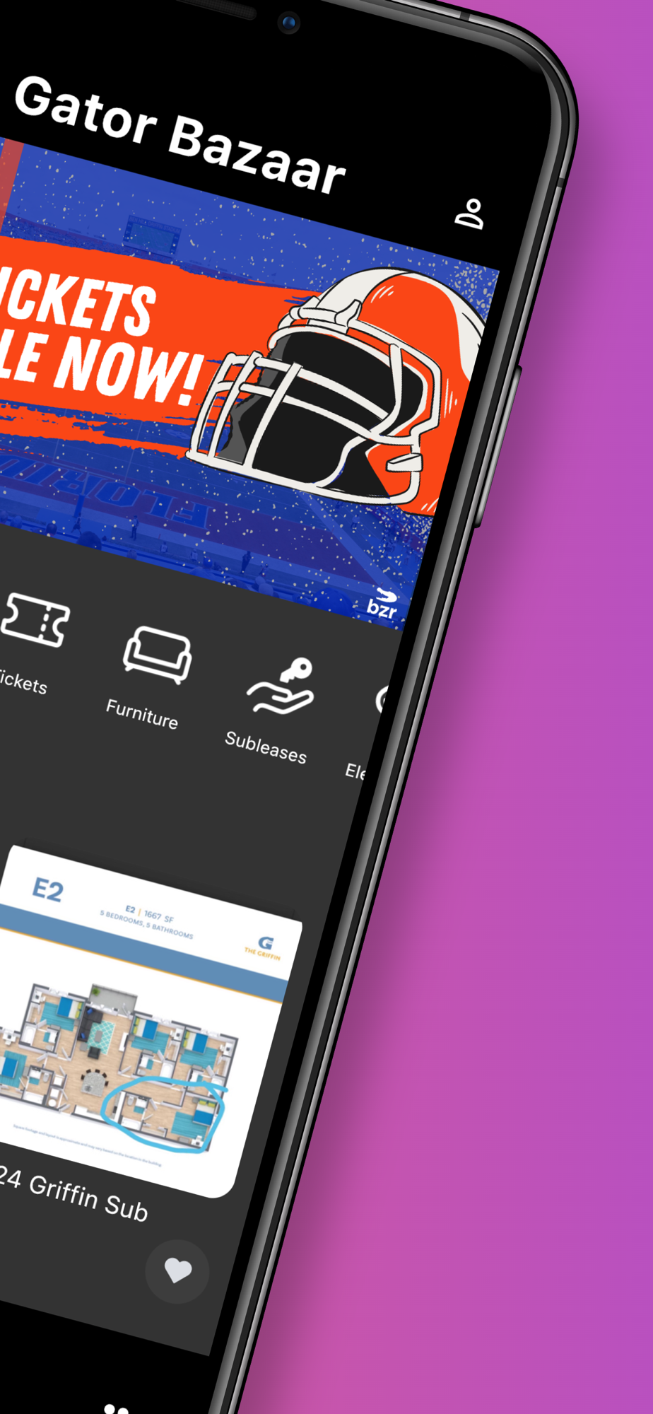 Gator Bazaar is a platform where verified students can buy and sell with each other. We have specialized categories that we know students want such as student tickets, formal dresses, and many more. All users must verify their college email before gaining access to the app, which will greatly reduce the risk of scams that are prevalent in other alternatives. Find a posting, send a message, meet up on campus. It's that easy!