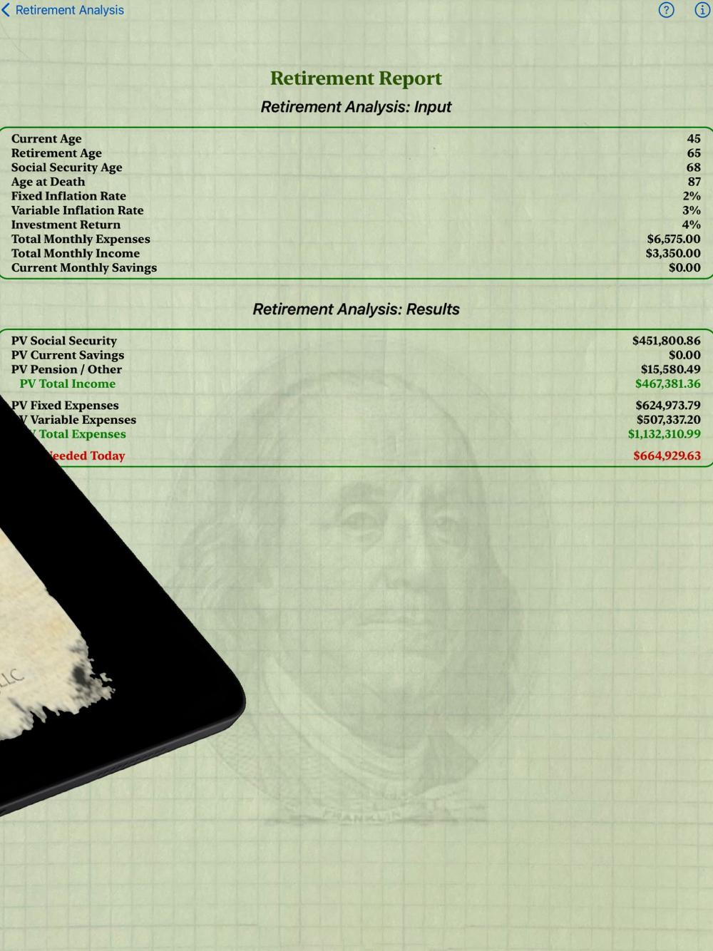 These are all important questions, and each one can be analyzed with RetireGPS. The powerful sensitivity tool allows you to change assumptions and dynamically see the impact on your retirement plan. Fine tune you savings plan, decide when to take Social Security, figure out when to retire…all of these can be analyzed with RetireGPS. A loan assessment tool is also included as a bonus.