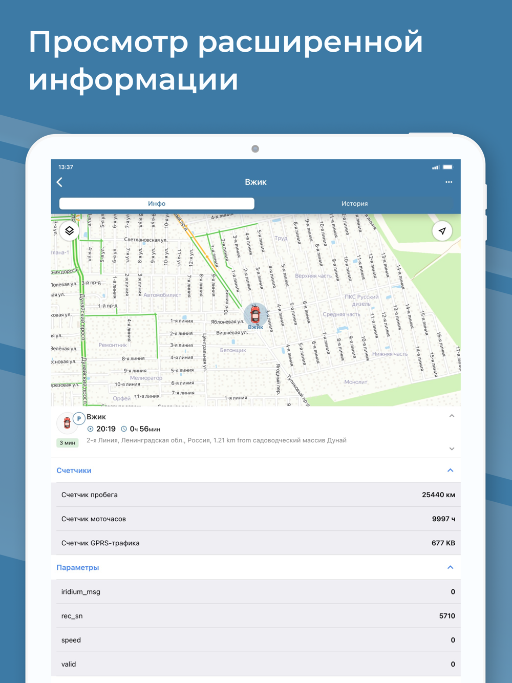 — отслеживать любые изменения скорости движения, уровня топлива, температуры, пробега и т.д.;