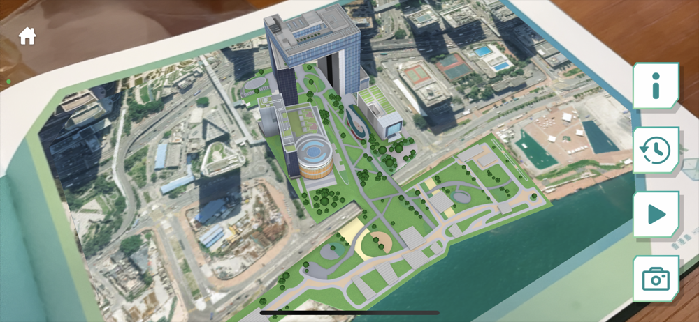 The "Time Travel . 3D Hong Kong" contains maps and aerial photos of the present and the past for showcasing the major changes in the topographical features of Hong Kong. The application of 3D Augmented Reality (AR) technology enables readers to enjoy a 360-degree panoramic view of the city's tourist spots and different styles of architecture with the use of their mobile devices.