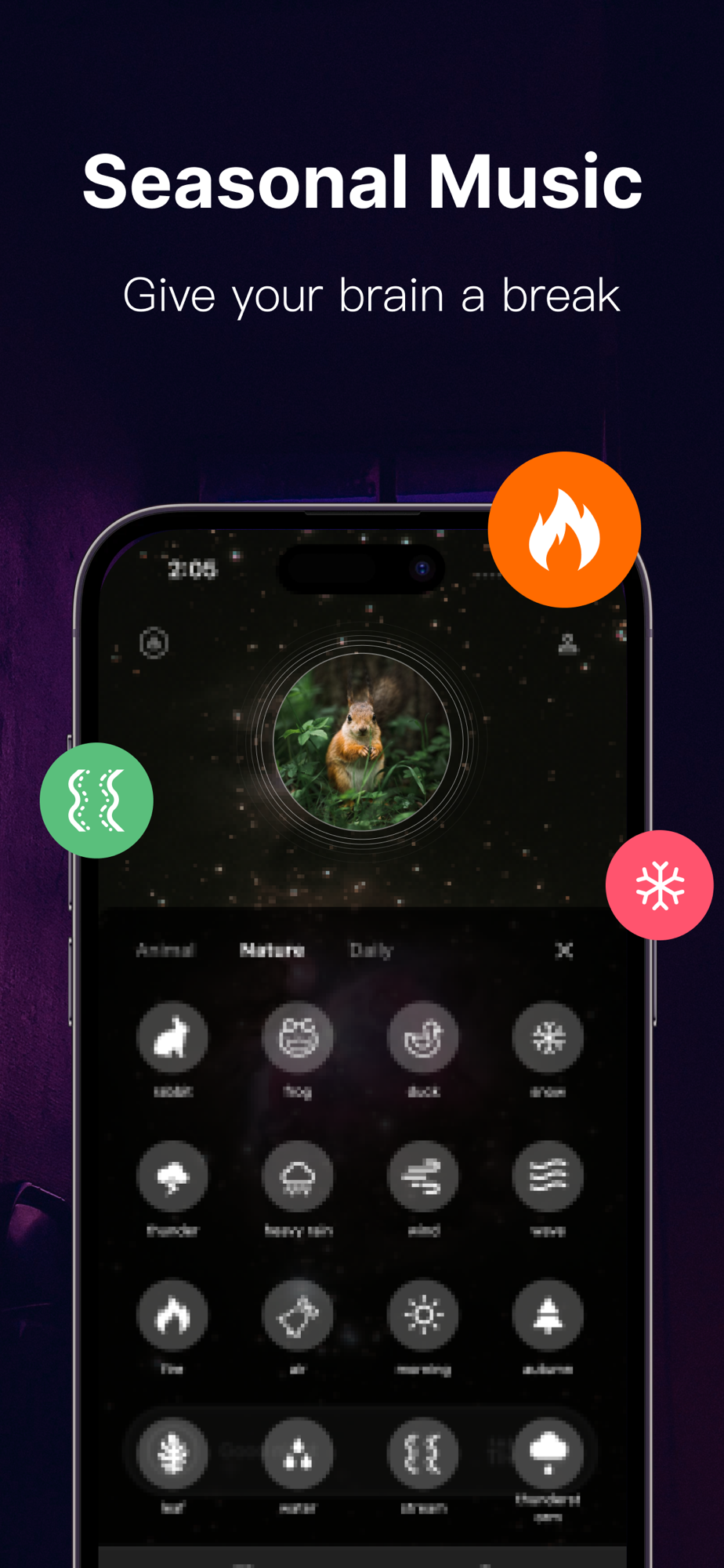 You can mix all kinds of music and sounds according to your own preferences, adjust their volume and match the corresponding wallpaper, there are more than 100 kinds of white noise and sounds for you to choose from.