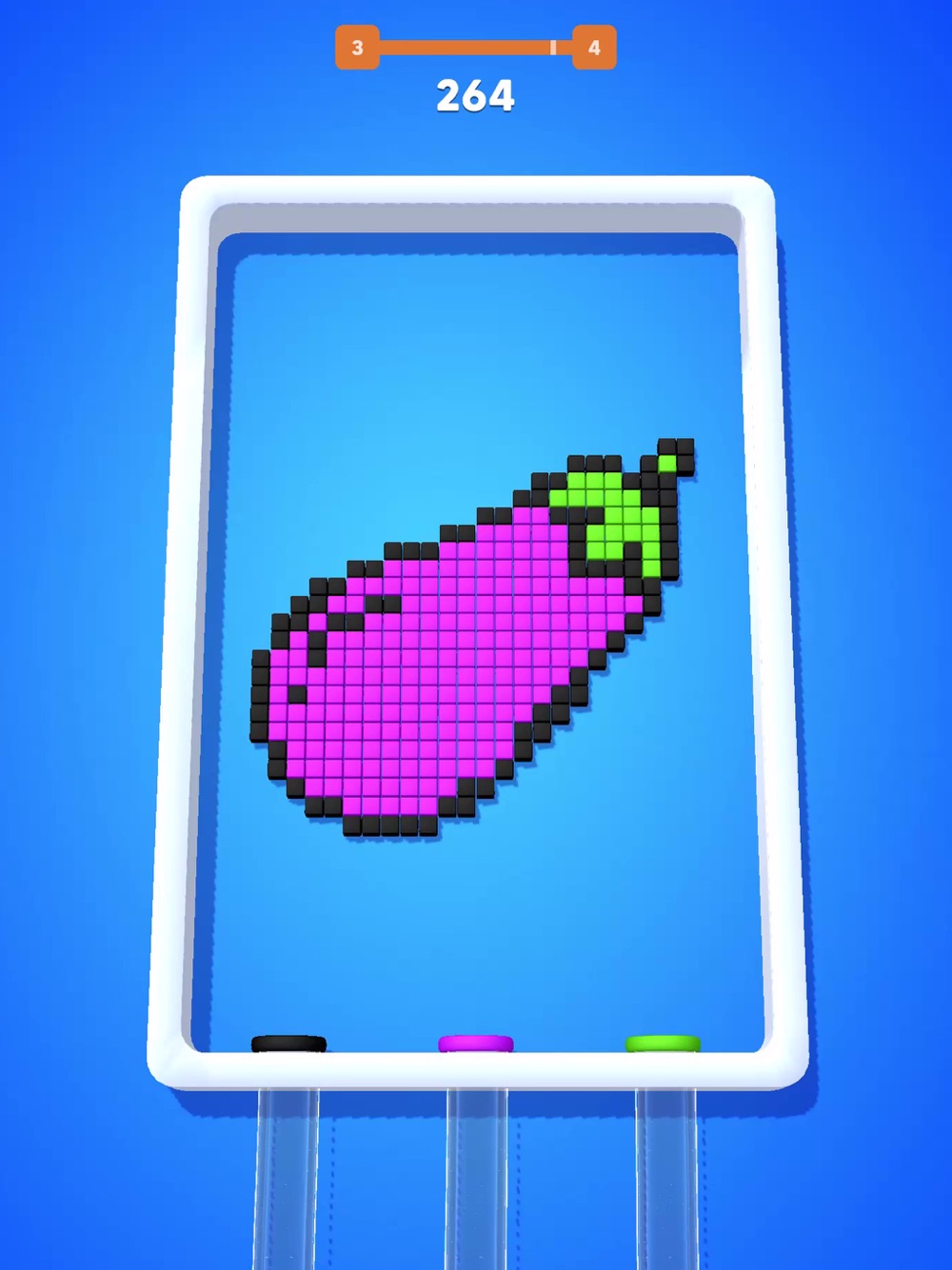 Vacuum all cubes to the corresponding colorful pipes to level up.