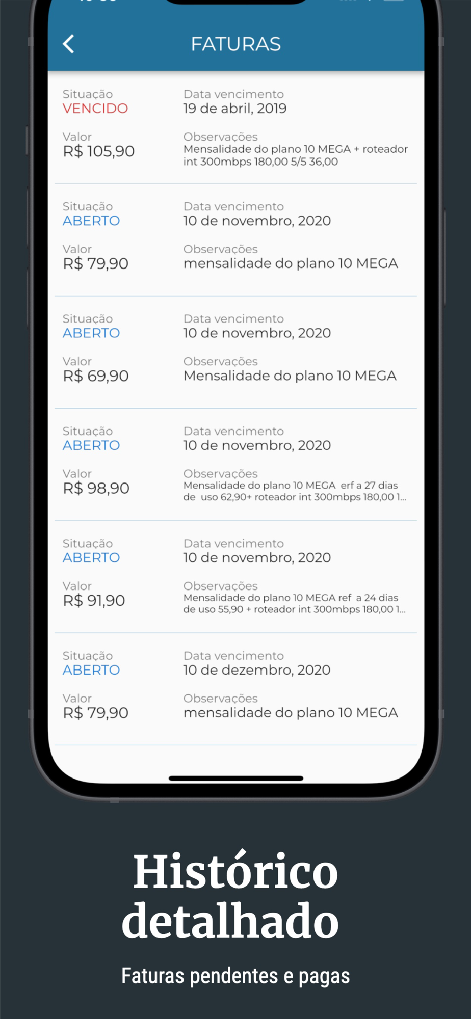 - notificações sobre sua conexão e boletos