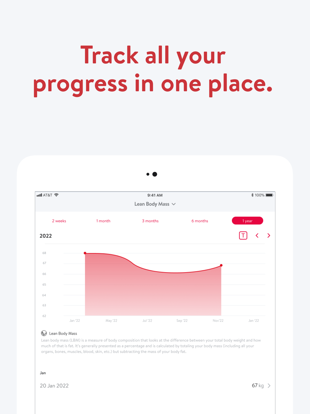 - Track body measurements and take progress photos