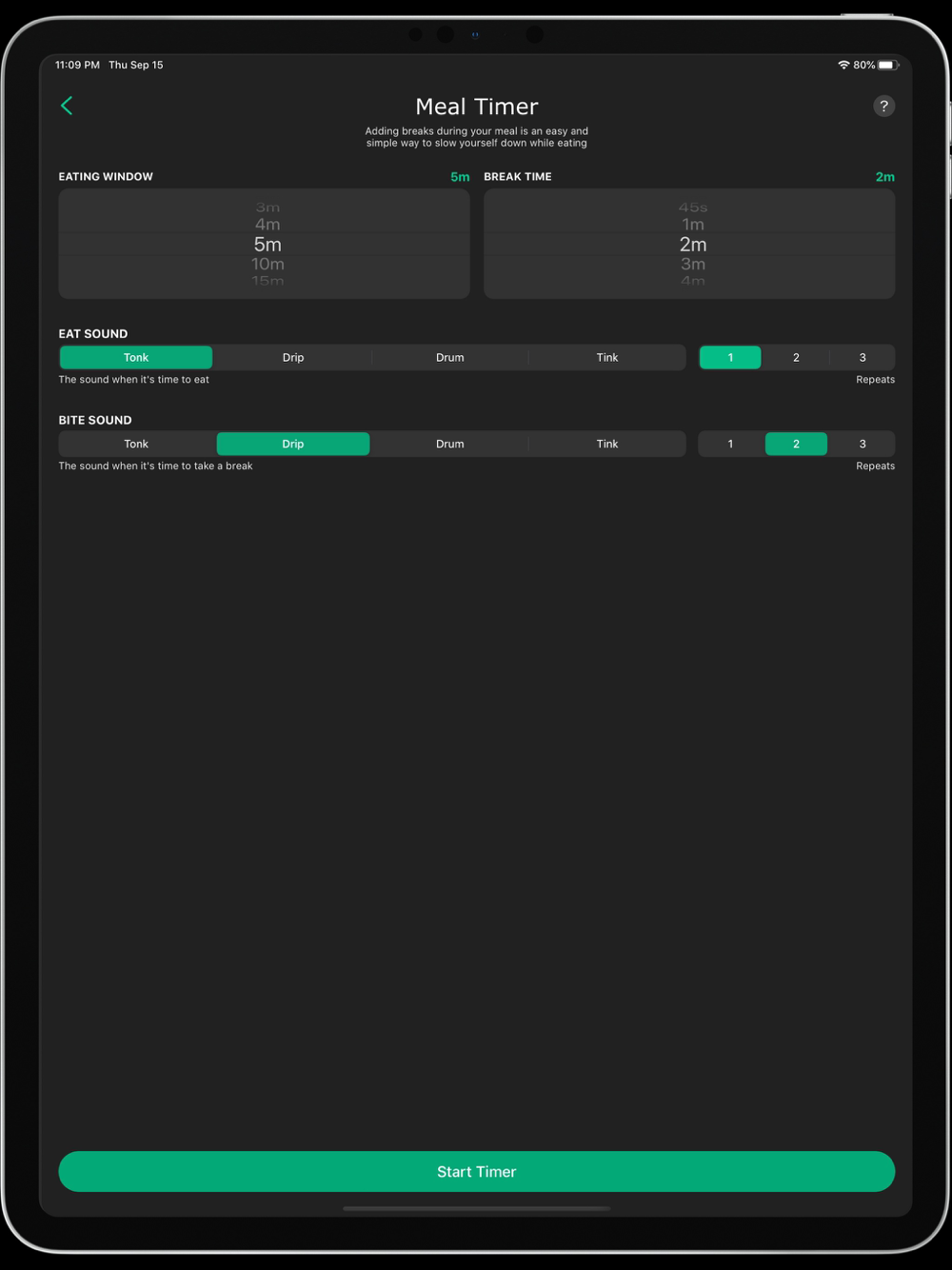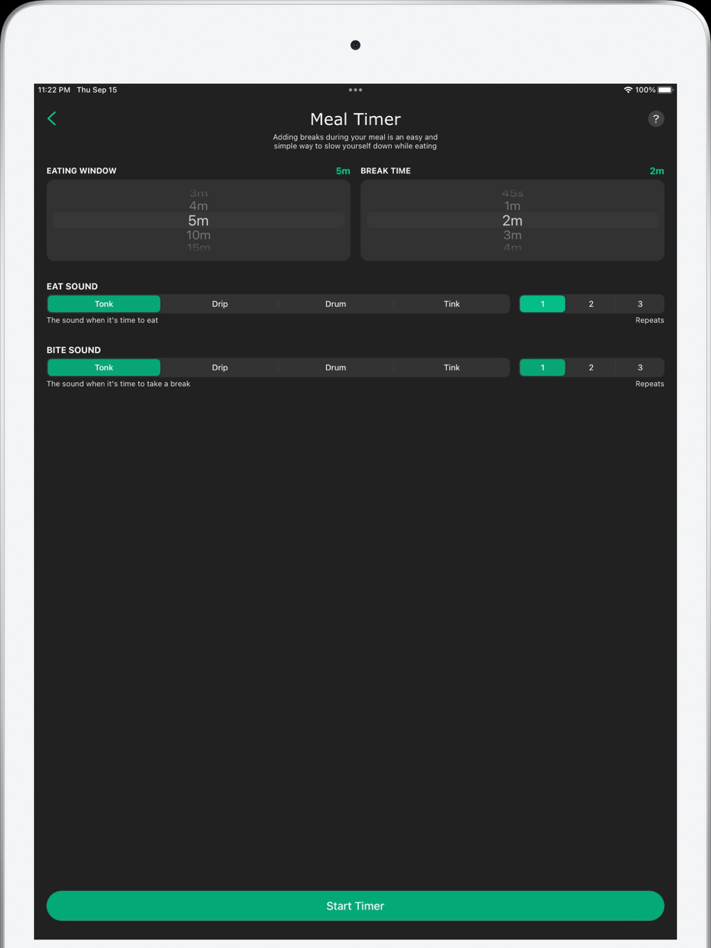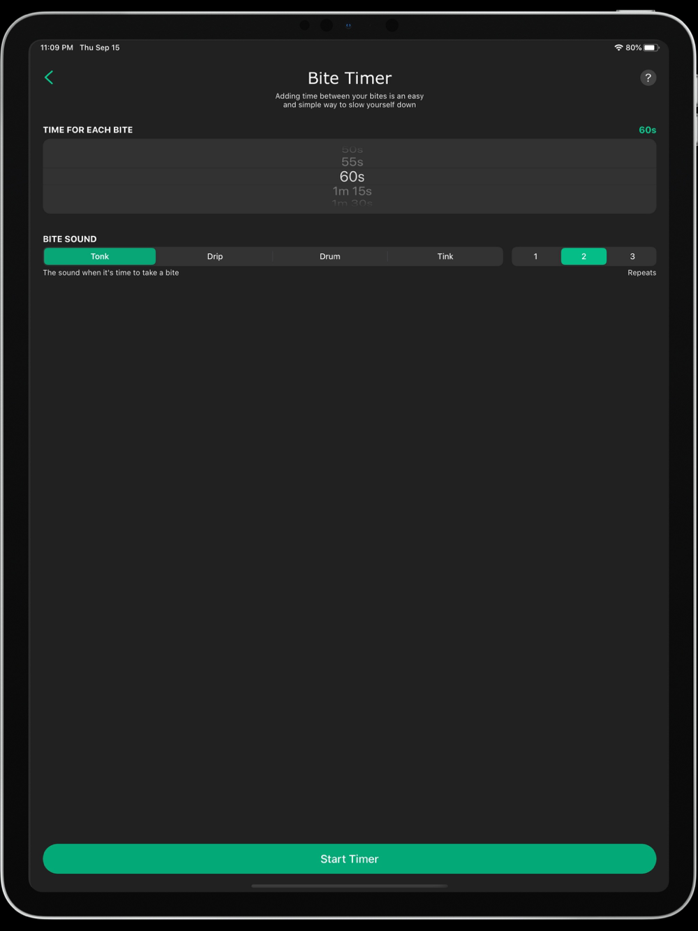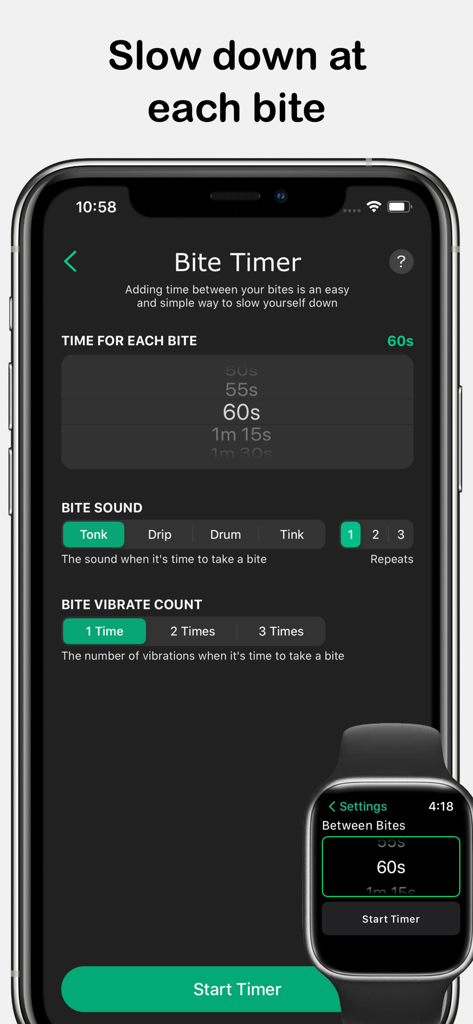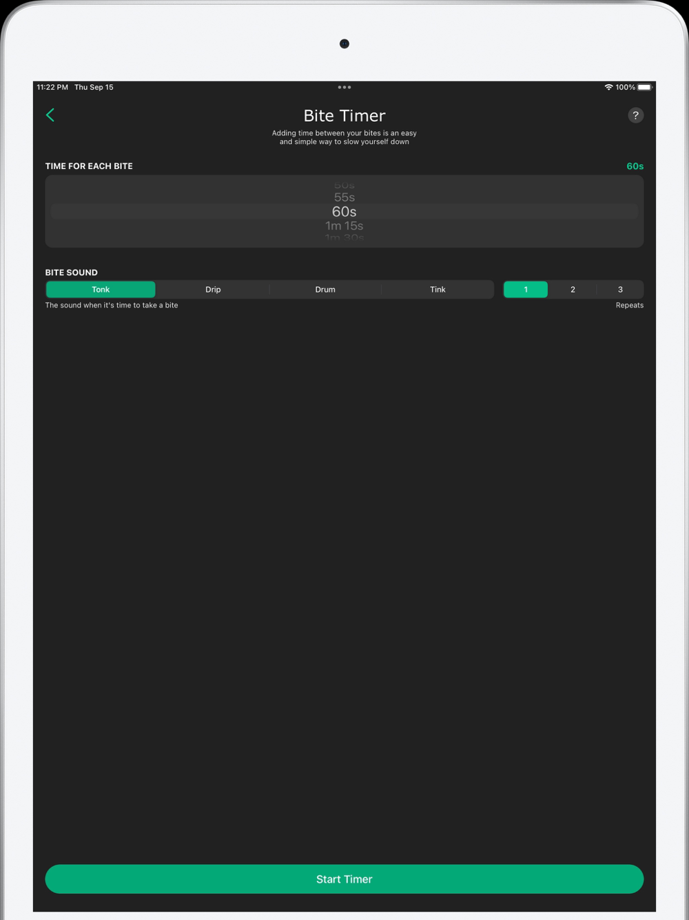 ● Bite Timer: Slow down how fast you eat by creating a set pause between each bite.