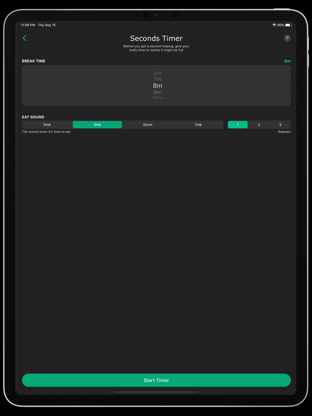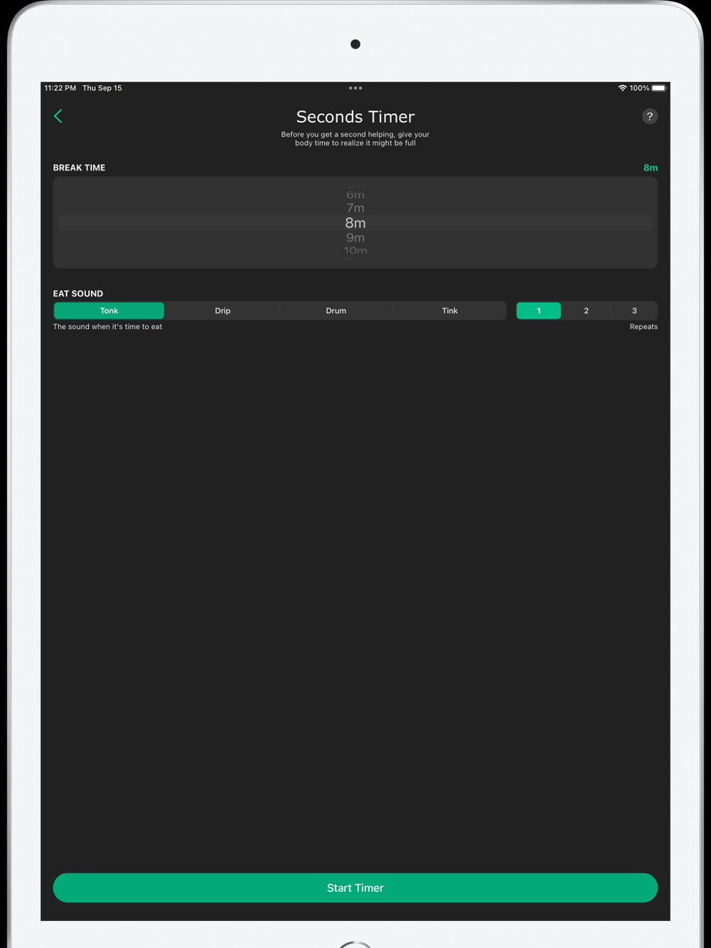 ● Seconds Timer: Create a mindful pause before you get more. Give yourself time to feel full before deciding you need more.