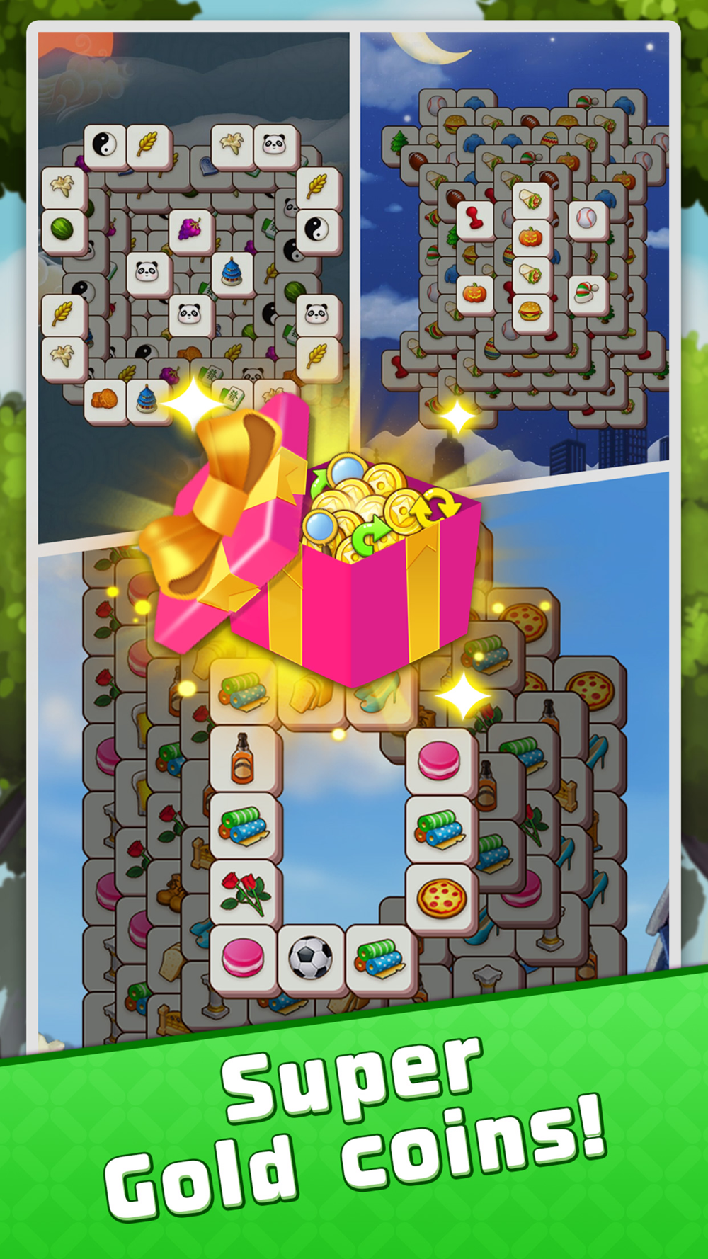 Hundreds of game levels and various themes make the game exciting! Match 3 tiles and eliminate all tiles, then you win the pass! More challenging levels are waiting for you to explore and experience!