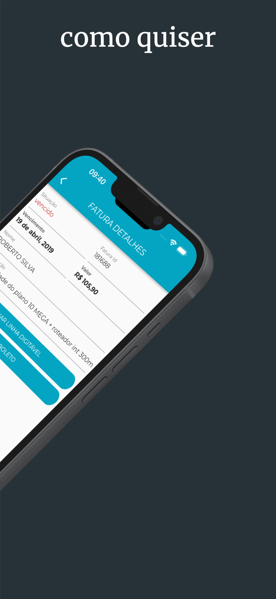 - notificações sobre sua conexão e boletos