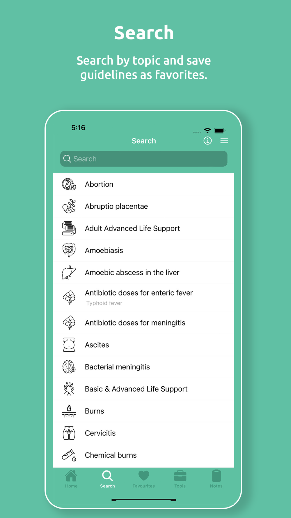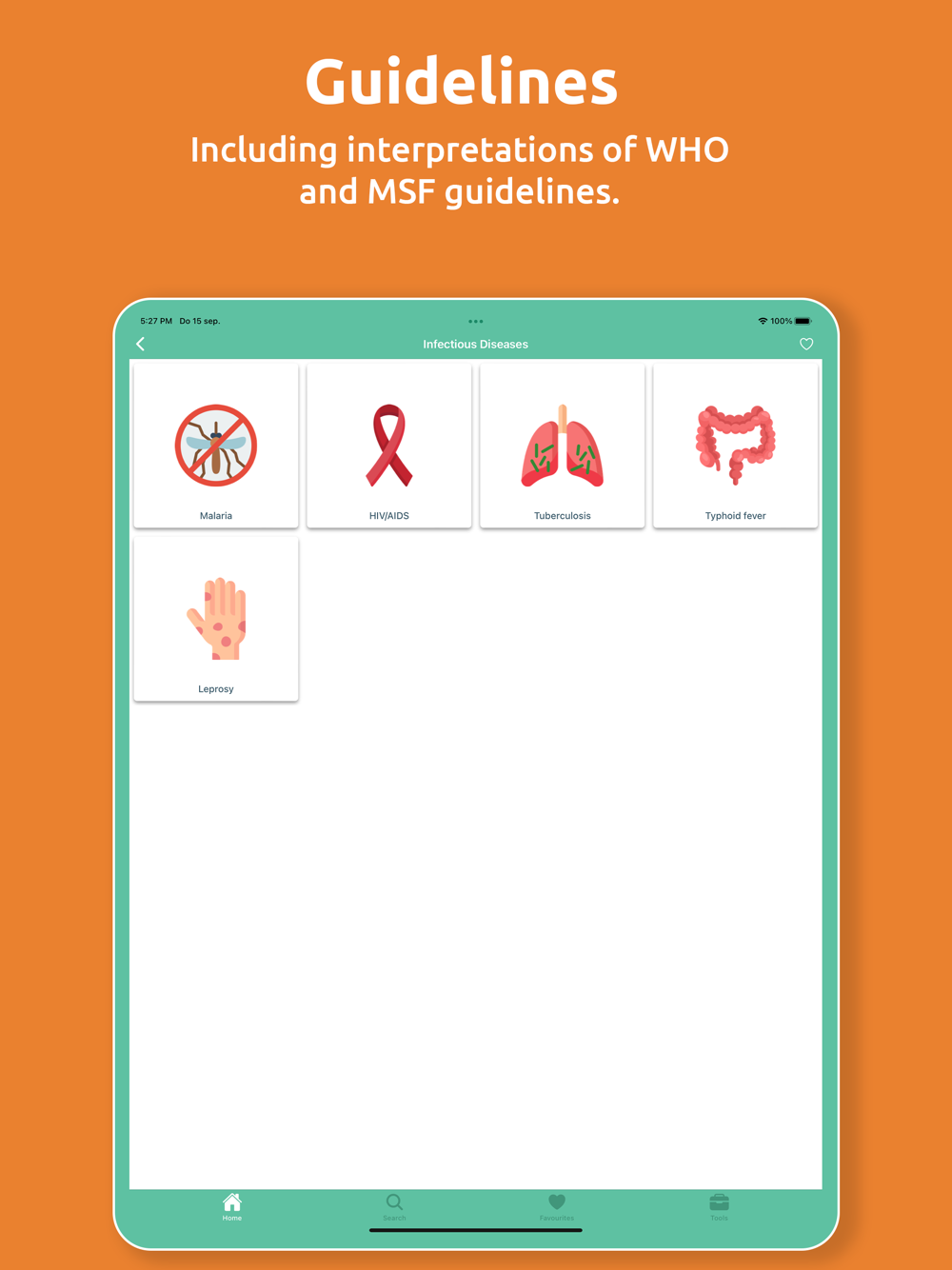 The "Tropical Medicine" app is intended exclusively for medical specialists, assistant physicians, residents and medical students and provides an overview of protocols of Tropical Medicine. The app is not intended to be used by the patients themselves, who are advised to consult a doctor in case of complaints.