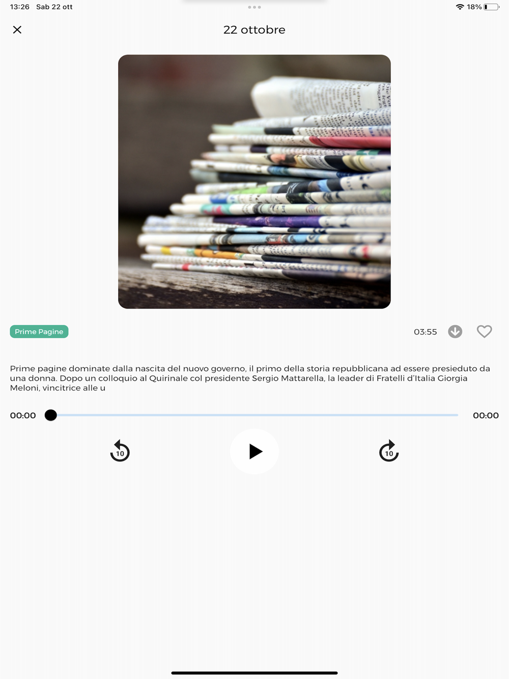 Con App VoiceToPress avrai le notizie principali tratte dai quotidiani in podcast sempre a portata di orecchio della durata massima di 4 minuti. L'informazione quando ti sposti in città o quando sei in viaggio per lavoro o mentre fai attività fisica. Il tempo dedicato all'ascolto delle Top News è sempre prezioso. Una redazione di professionisti sintetizza gli articoli più importanti e imperdibili della giornata tratti dalle prime pagine o dagli scenari più rilevanti Banche, Finanza, Energia, Innovazione e molto altro .