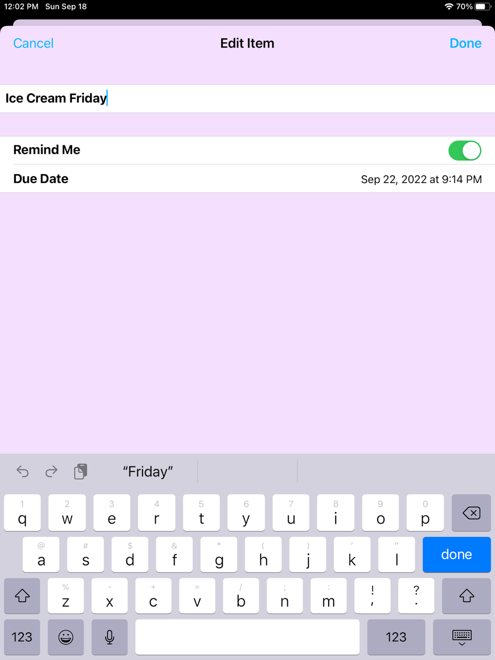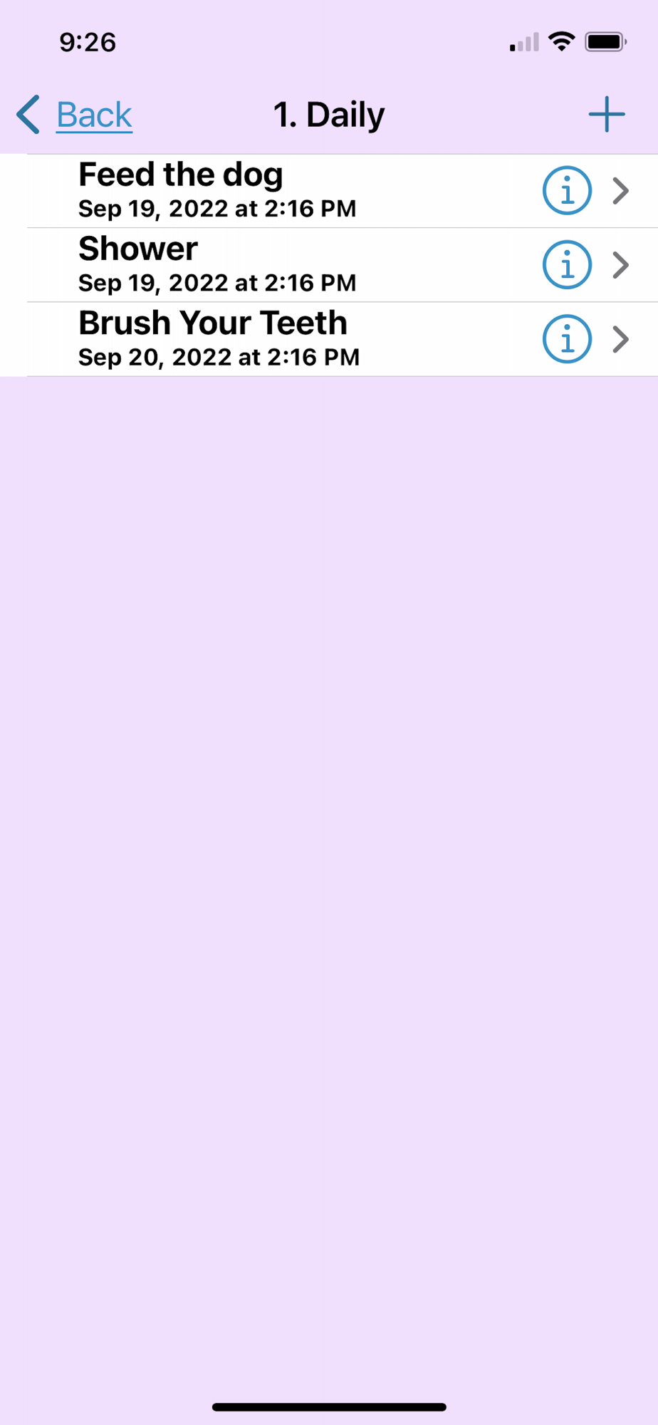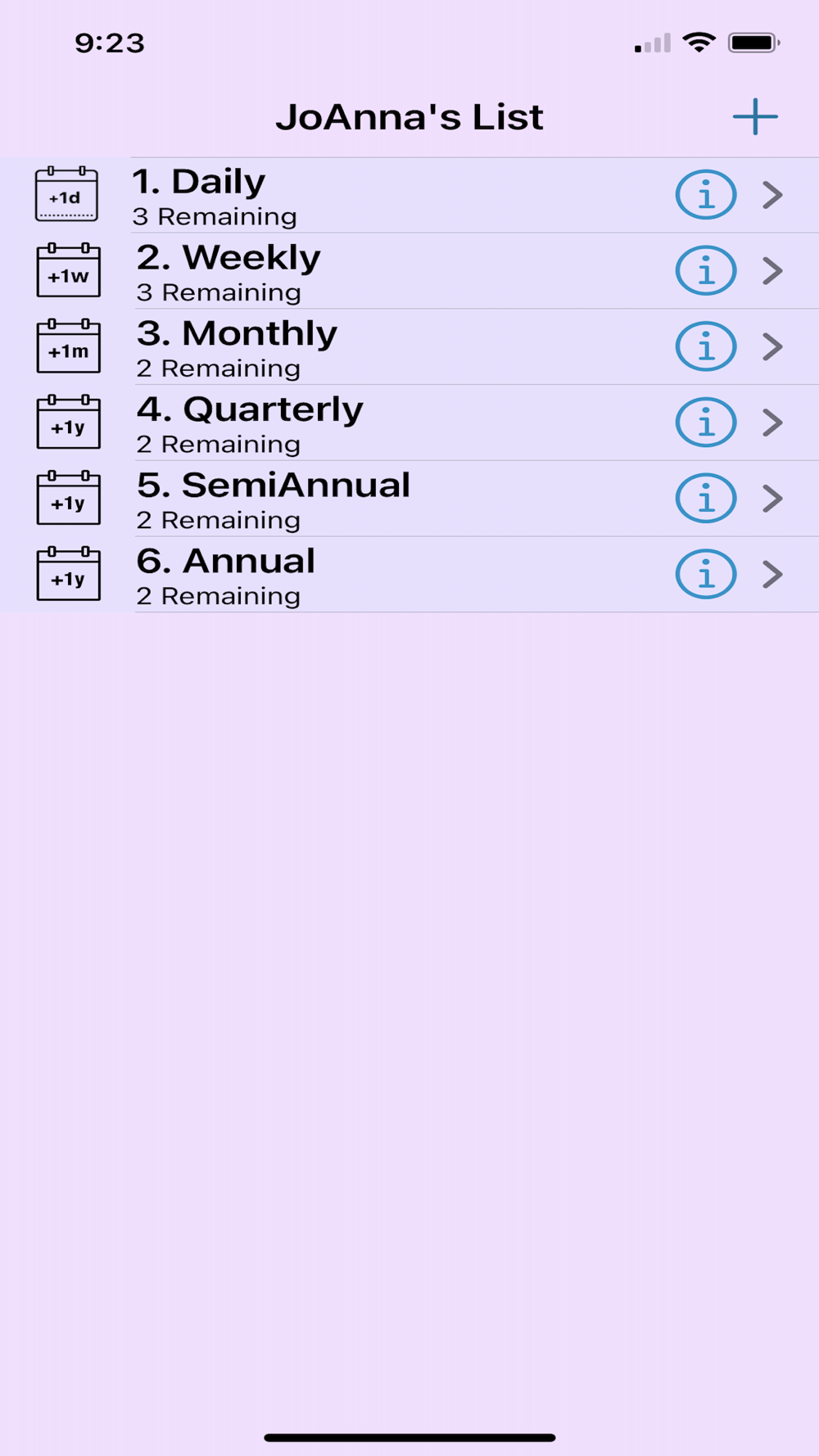 To do lists for daily, weekly, monthly, quarterly, semiannual, and annual tasks. Quick reset for completed tasks by shaking iPhone.