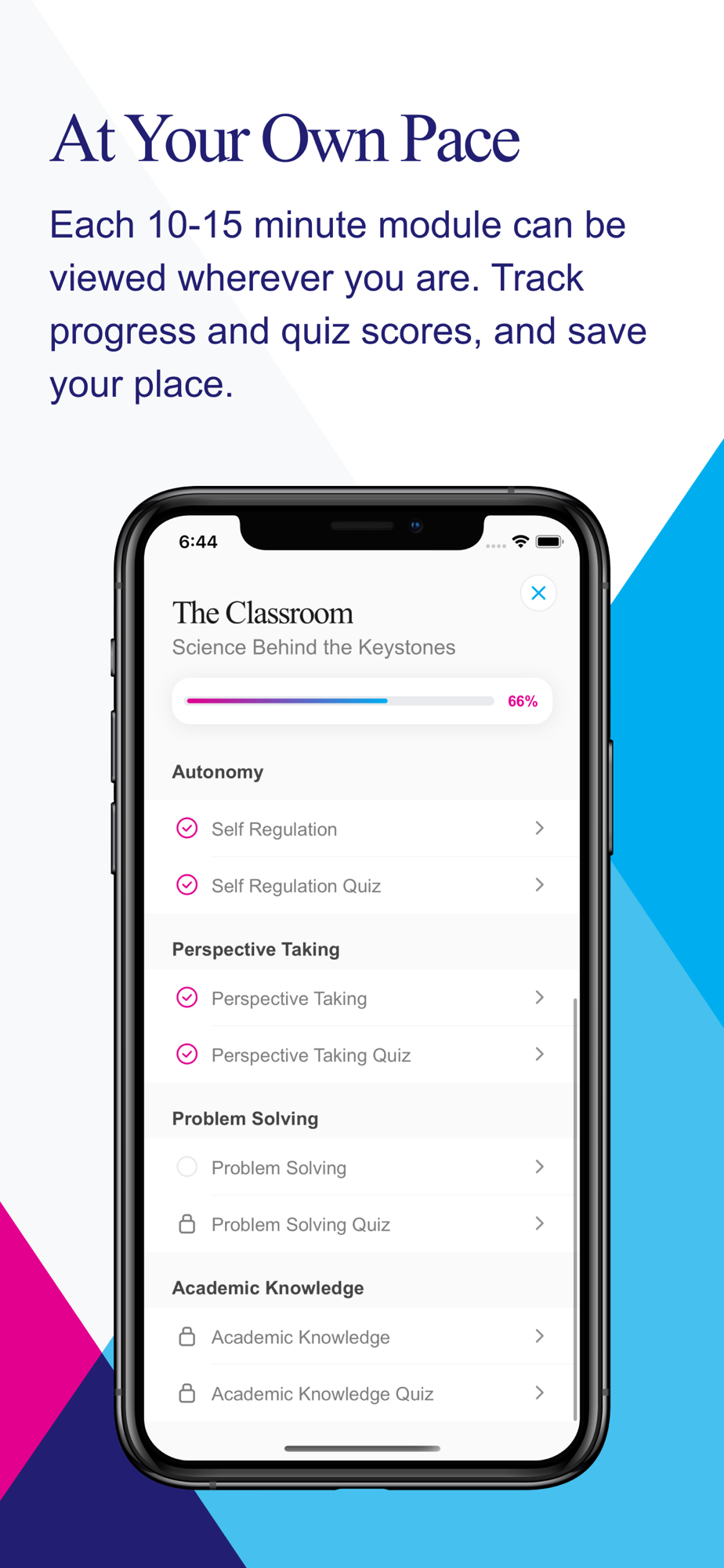 LEARN AT YOUR OWN PACE—Track your progress on the 13 modules. Your progress will be saved whether you choose to continue on your phone or your computer, watch the curriculum all at once, or take your time.