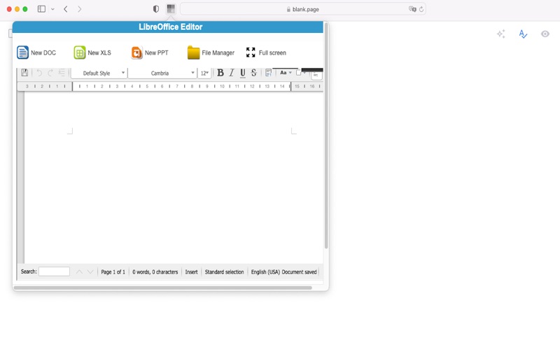 OffiDocs Editor is an extension that allows to create, edit and view any Microsoft Word document, Excel spreadsheet and Powerpoint slide. It is an integration with LibreOffice Online and a file manager in order to handle all your documents when online. It is a document, spreadsheet and presentation editor integrated with our file manager to manage only DOC, DOCX, XLS, XLSX, PPT and PPTX file types with this online app.