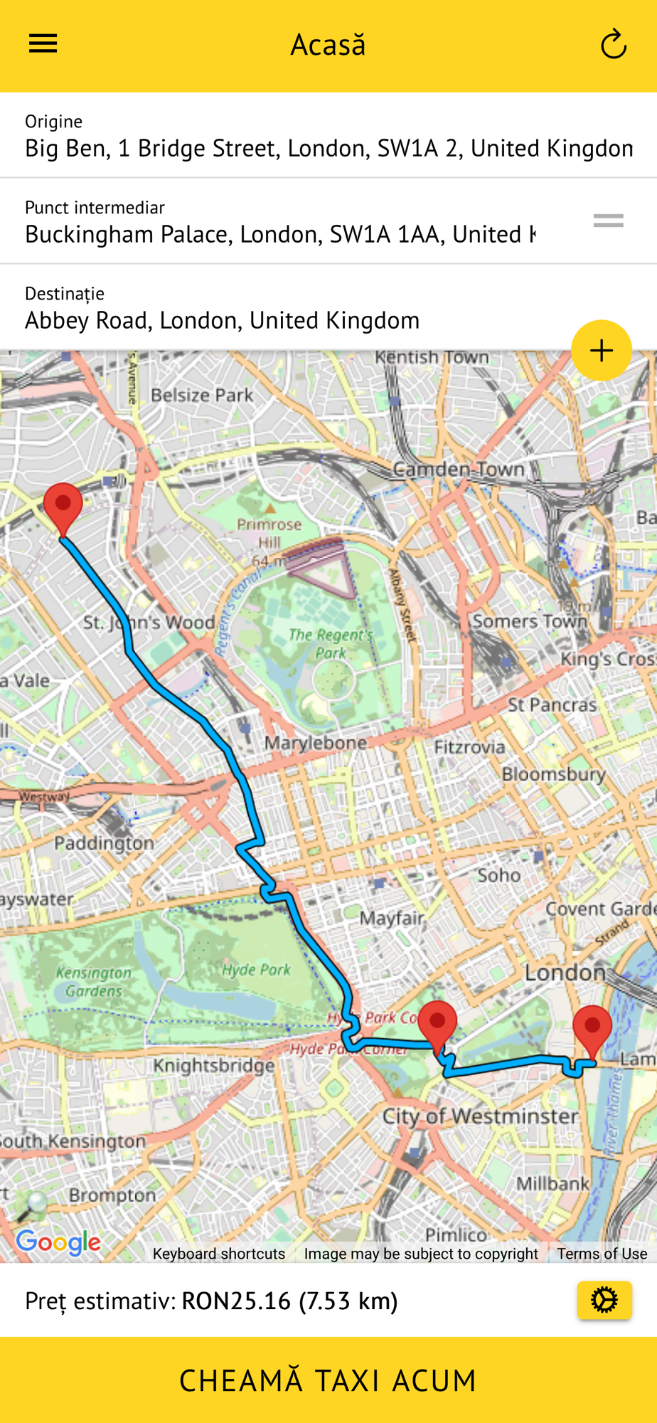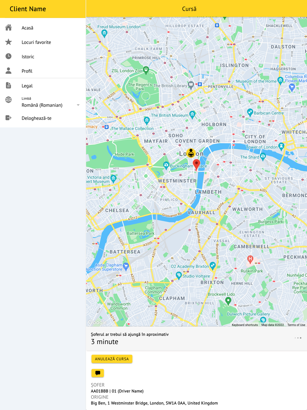 - După ce s-a trimis comanda și a fost acceptată de către un șofer, vei putea vedea pe hartă unde e acel șofer față de punctul de origine ales de tine.