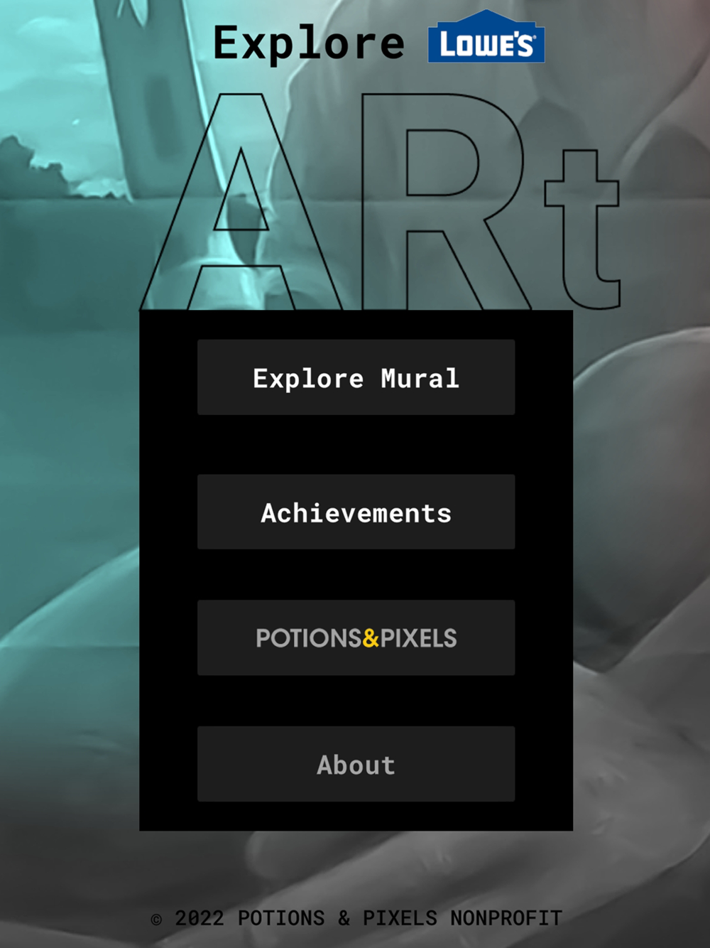 This app was created by POTIONS & PIXELS, a nonprofit organization that utilizes games, art, and technology for social impact. This app was made possible by the generous support of Lowe's.