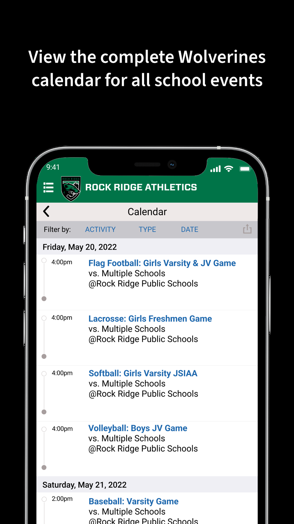 The Rock Ridge Athletics App is your source for all Wolverines activities. Schedules, Rosters, Scores, Team Info, Articles, Photo galleries, and Upcoming Events are all available through our Rock Ridge Athletics app.