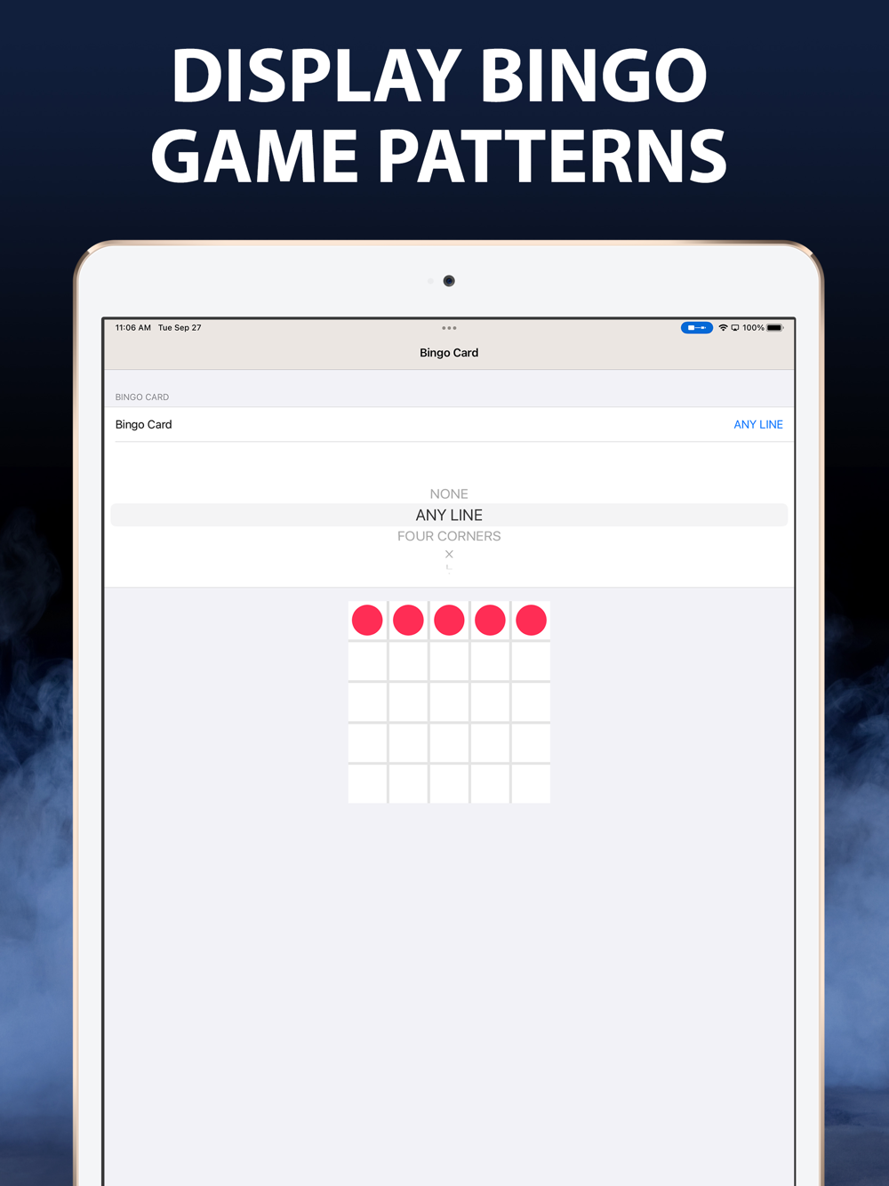 Bingo Caller also displays the current BINGO pattern that needs to be completed in order to win. It has a variety of preset patterns that can be used.