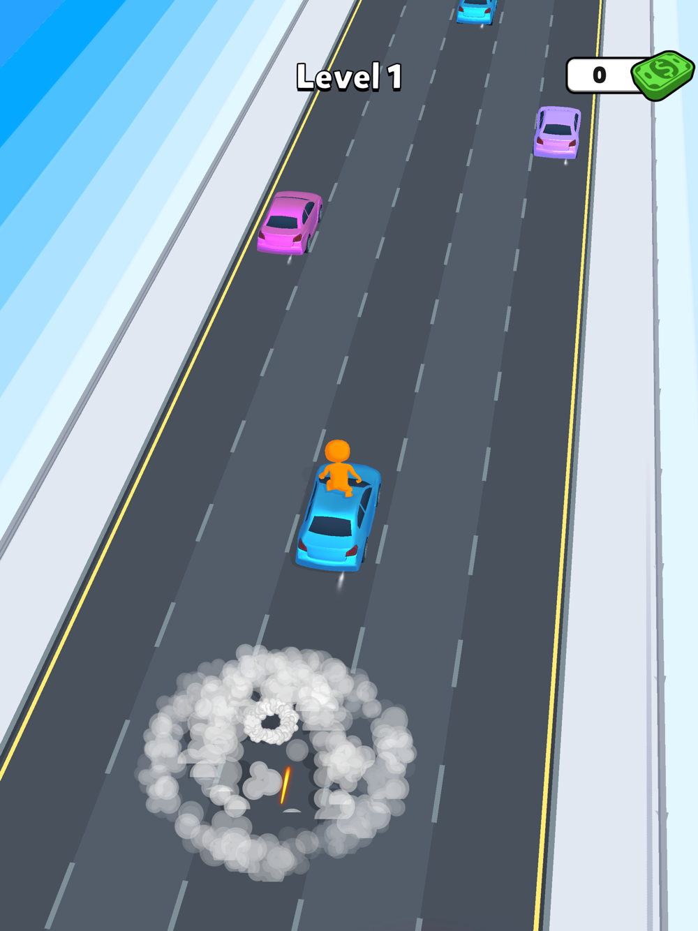 Jump across the cars to escape the cops.