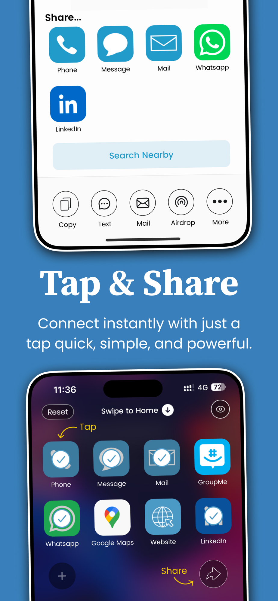 - Tap & Share Technology: Share instantly using QR codes or NFC taps.
