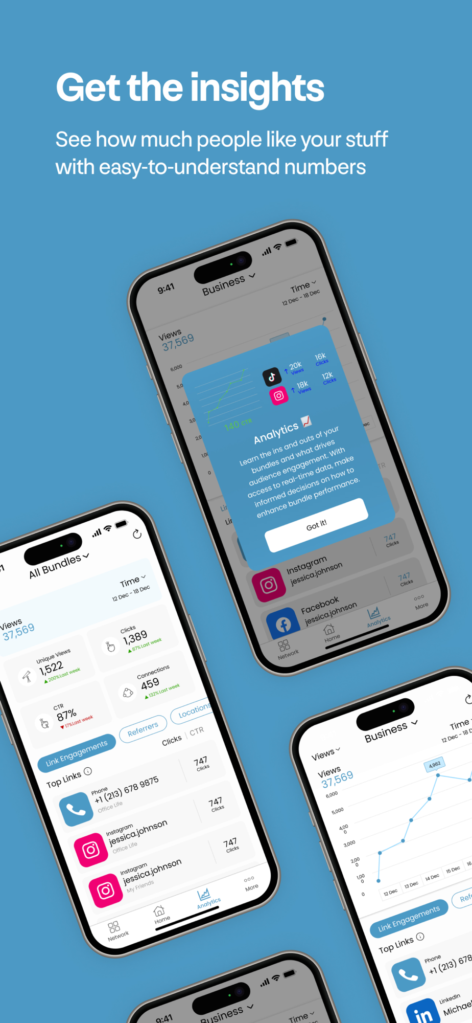 - Advanced Analytics: Track profile views and engagement to grow real-life connections.
