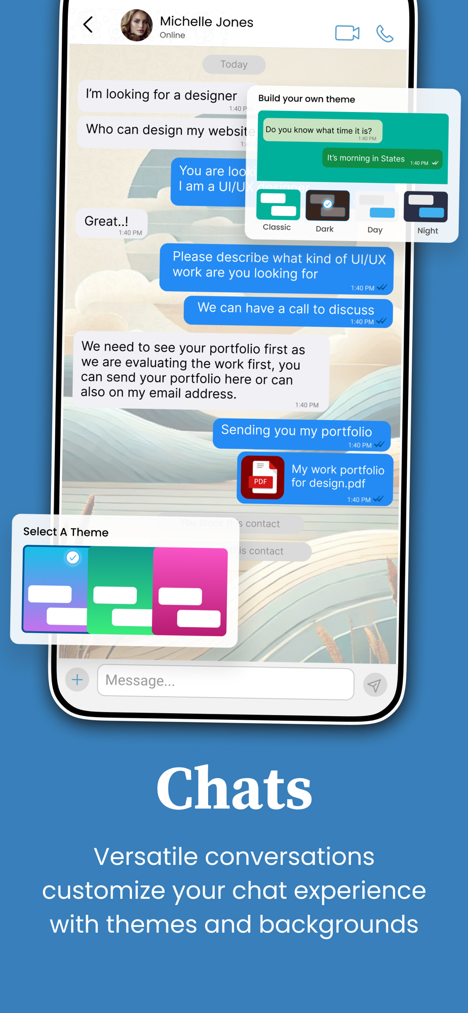- Messaging: Encrypted chat secures your privacy Memos & Online Status: Take notes and manage visibility with custom status settings.