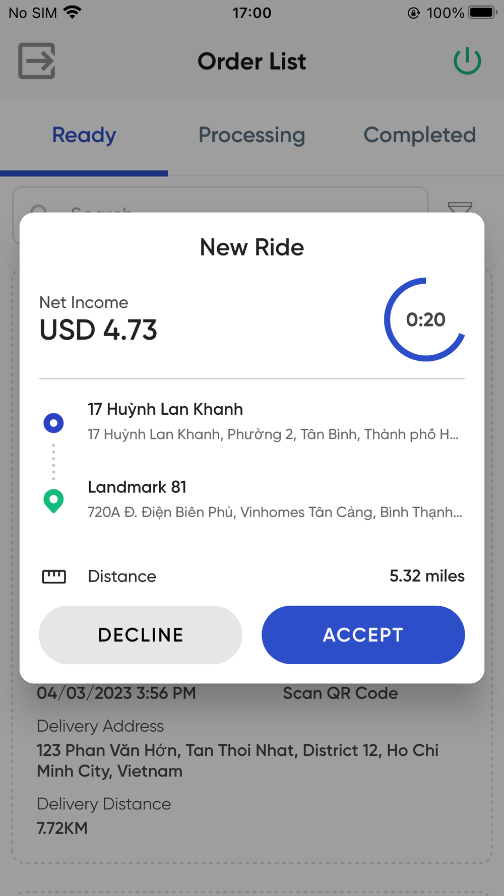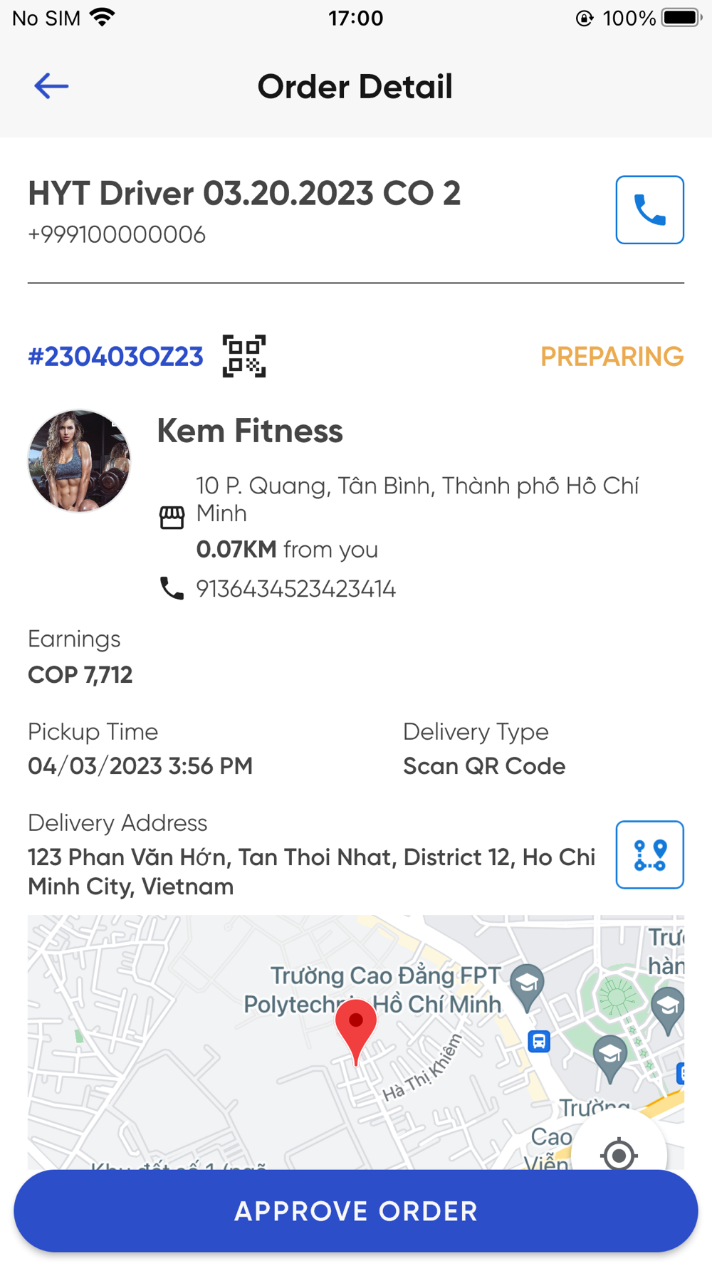 HytOrderDelivery allows merchant staff to pick up the orders ready for delivery into their list. The app provides some options for merchant staff to confirm an order to be completed. Merchant staff can view order details and the shipping address on a map.