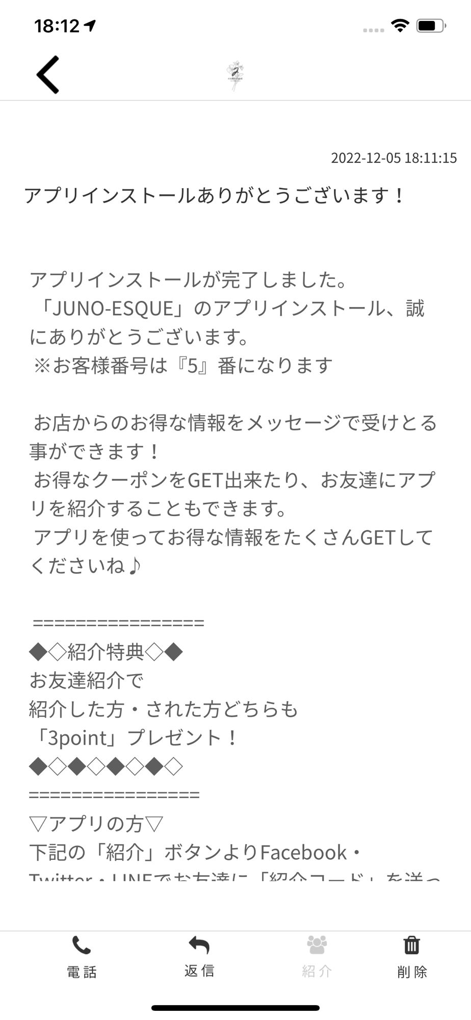 JUNO ESQUEのアプリをSNSを通じてお友達に紹介する事ができます。