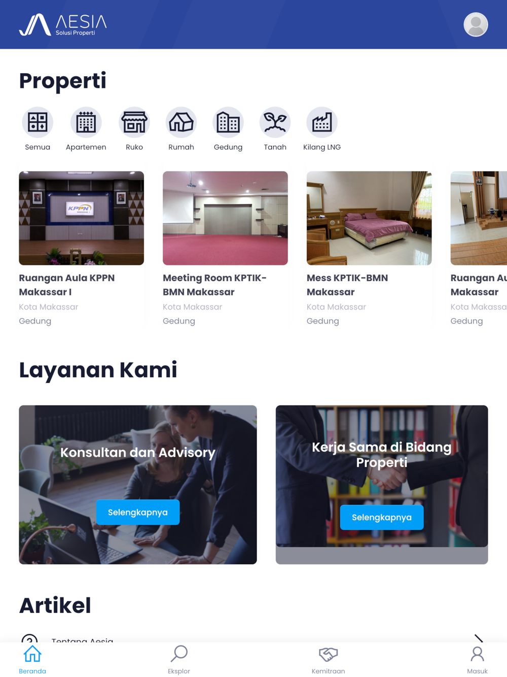 AESIA hadir di tengah masyarakat sebagai solusi atas kebutuhan properti. Dengan berbagai layanan yang dimiliki mencakup sewa guna, kerjasama properti dan jasa konsultasi. AESIA bukan hanya menawarkan solusi terbaik untuk pemanfaatan aset namun juga menawarkan nilai tambah dari semua aset yang dikerjasamakan.