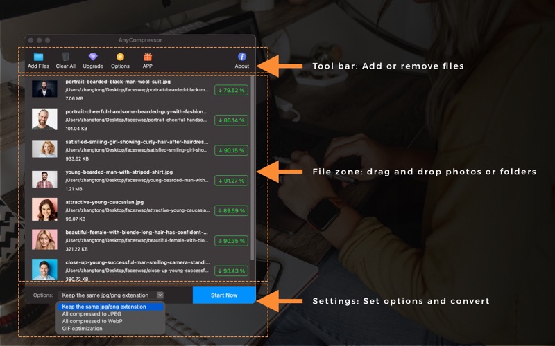 AnyCompressor is a straightforward App that enables you to compress and optimize images in a batch process. It could reduce your image size greatly without losing the original image quality.