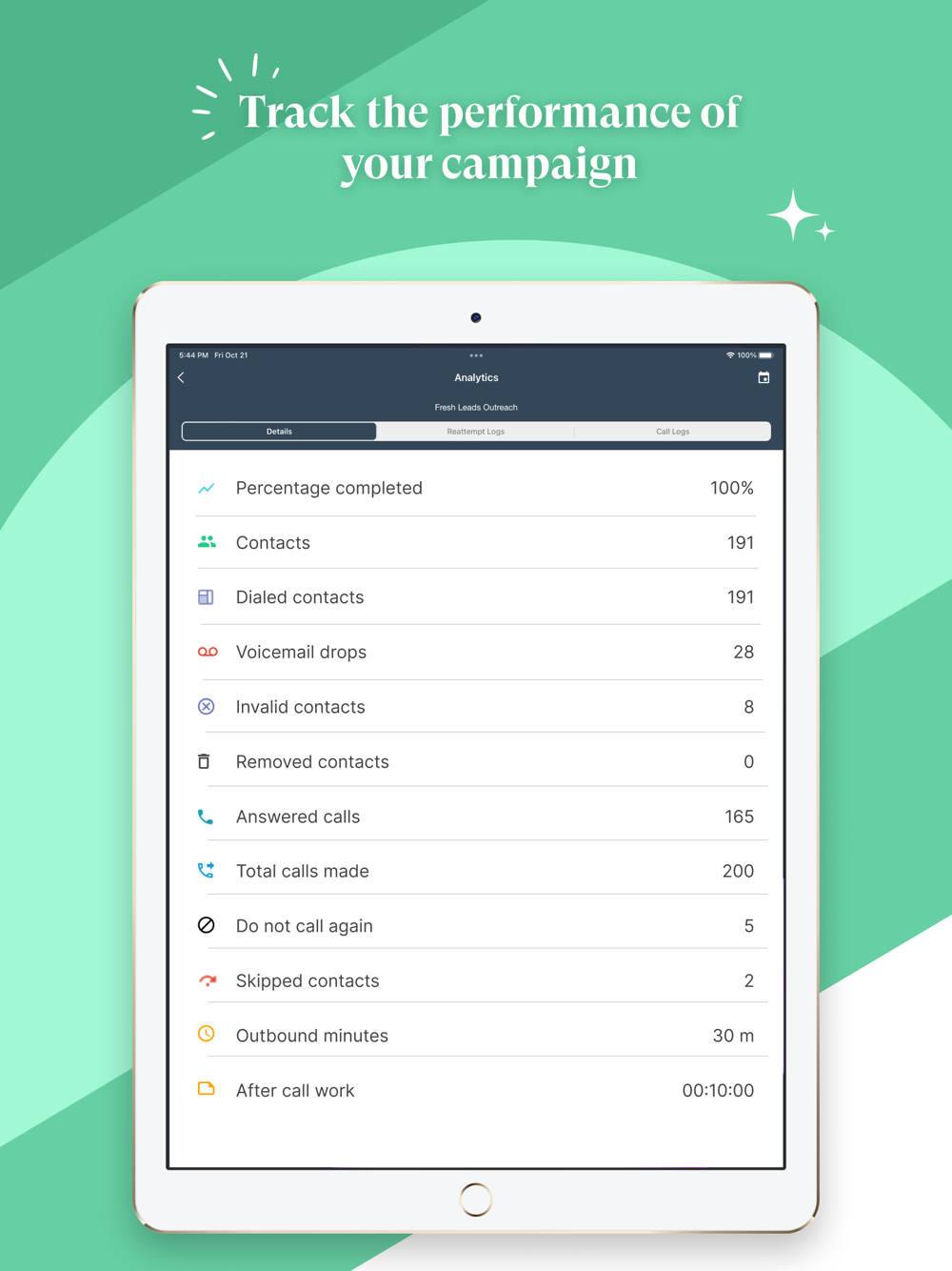 Sales dialer app helps you to reach out to your high-quality leads, while increasing your agent's productivity and reducing call abandonment rates.