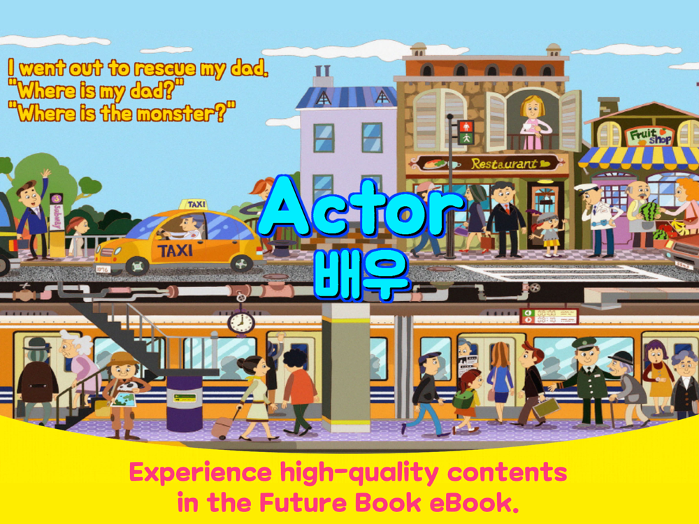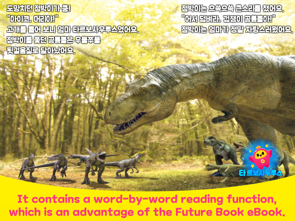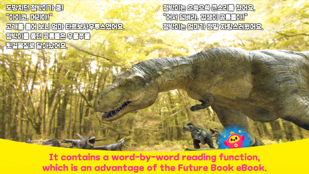 It reads out the text and pictures in Korean and English with realistic sound effects.