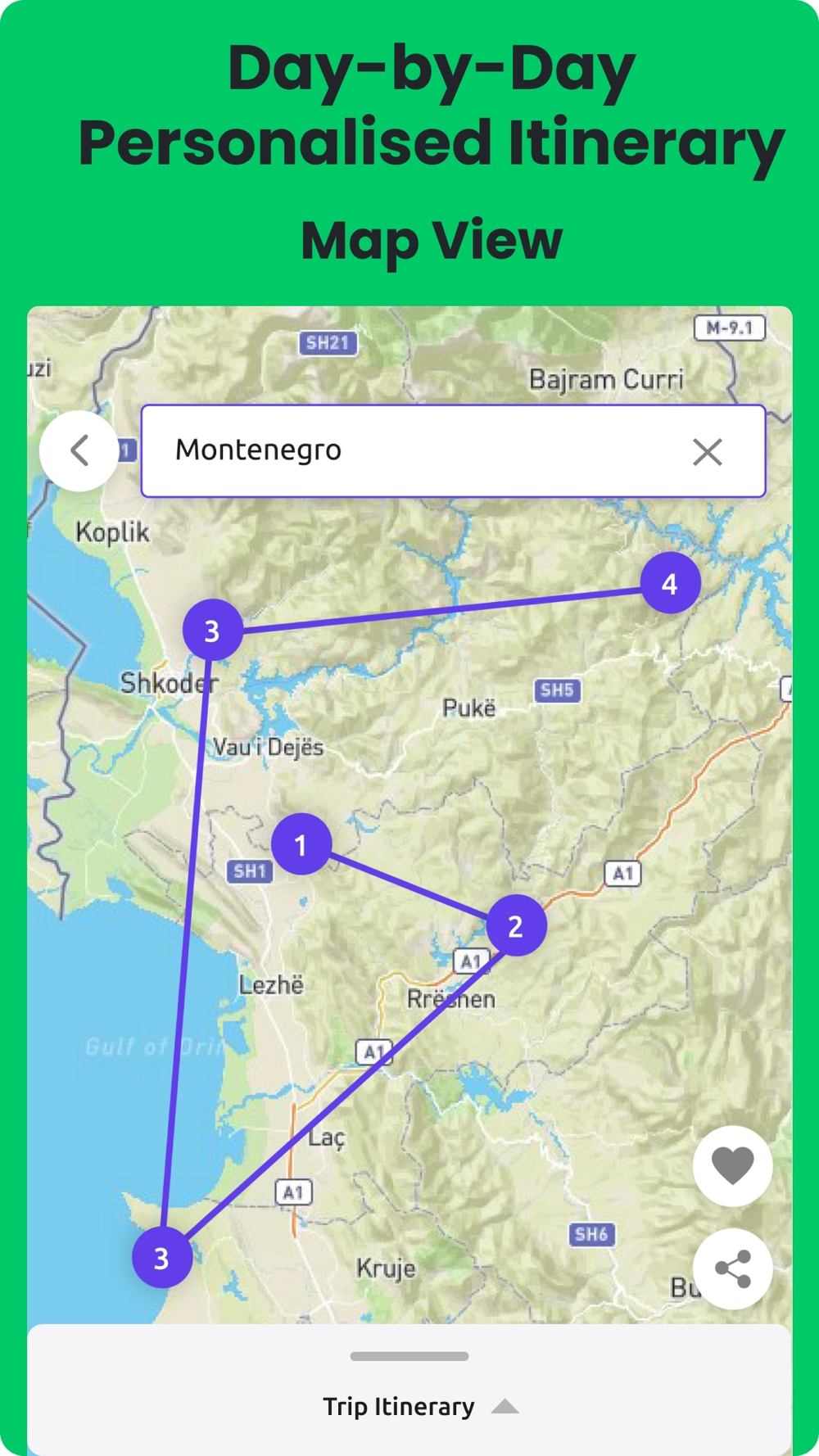 Our interactive map presents your itinerary with relevant pictures and descriptions, making it easy to understand and work with. With PlanYourTrip, you'll experience the magic of traveling like never before.