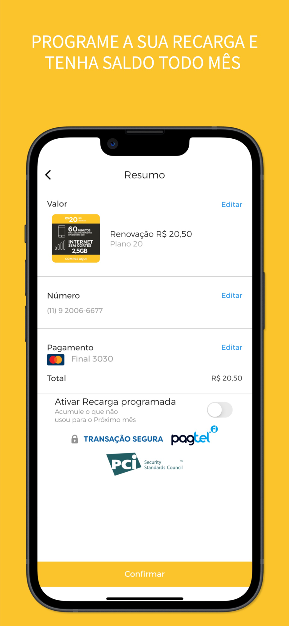 - Histórico das recargas realizadas online (aplicativo, site e por SMS).