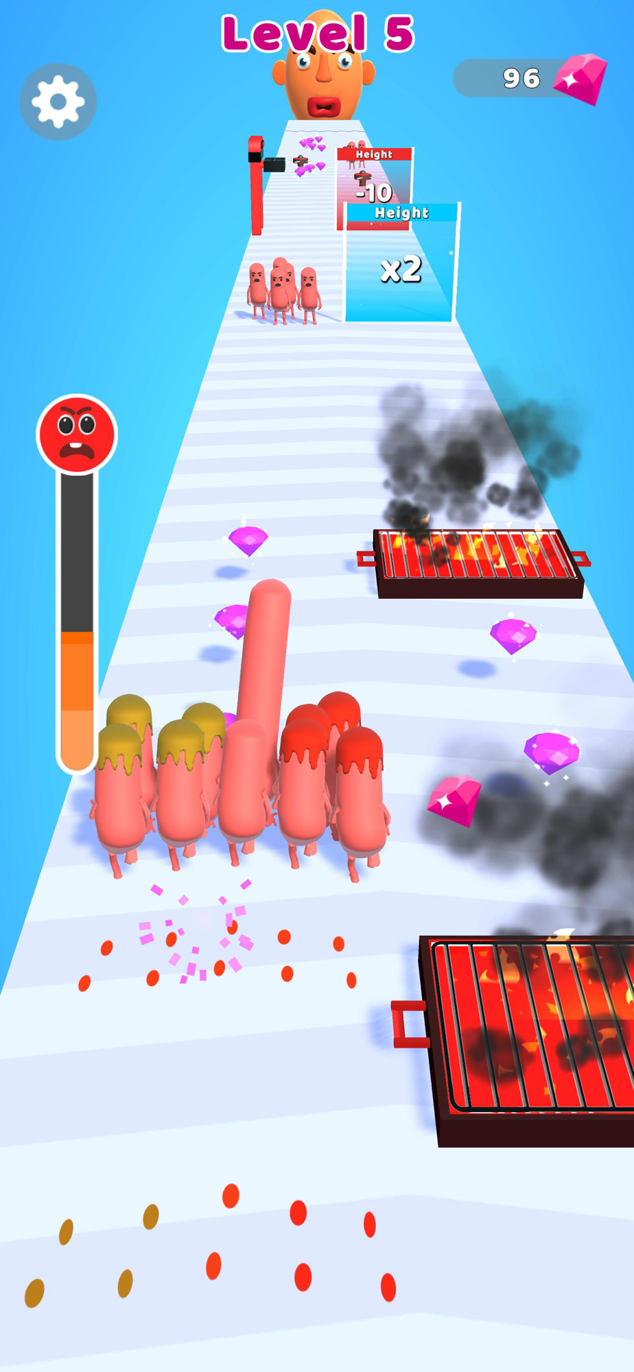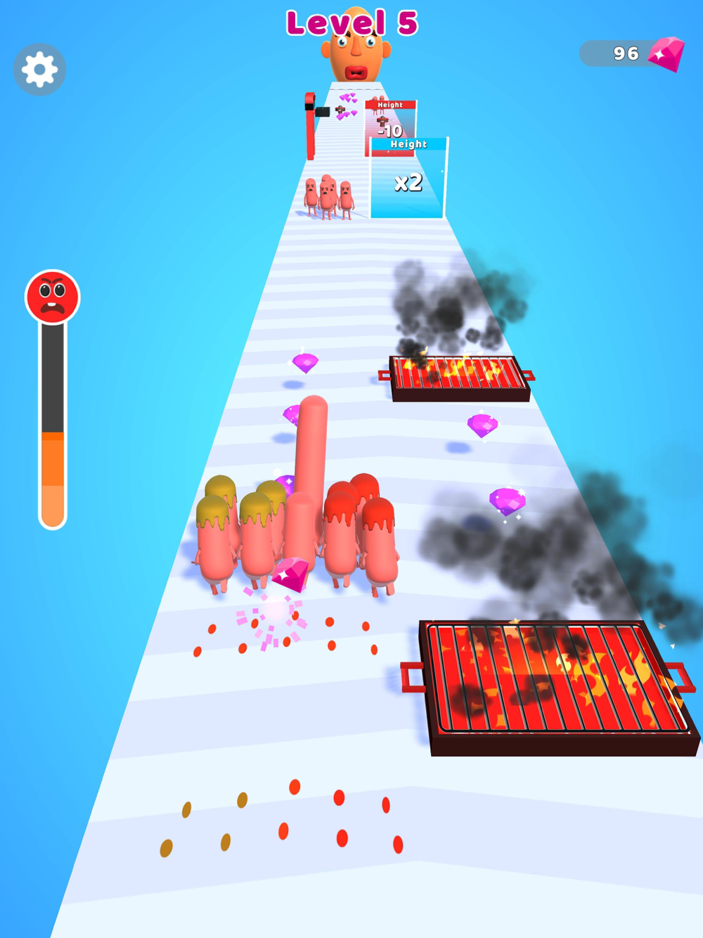 Gather more sausage and grow in size to feed him! Cover your sausages in sauce, watch out for traps and grills!