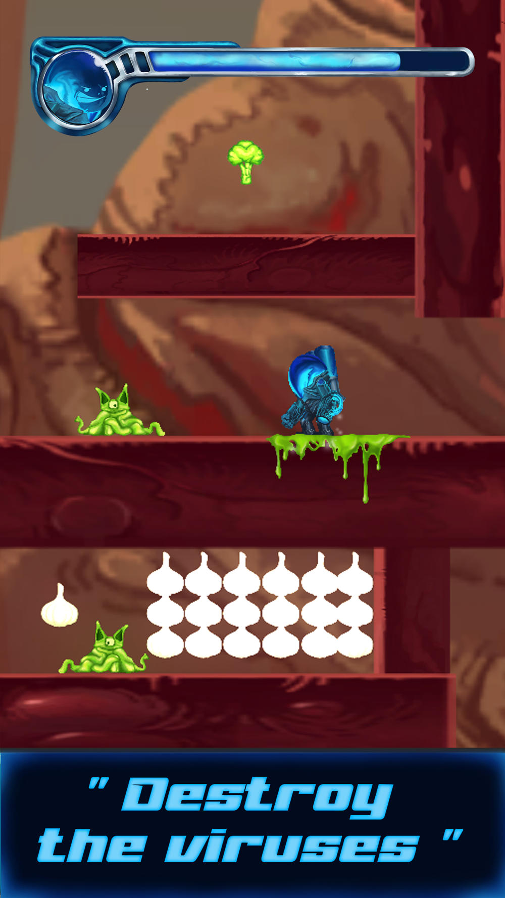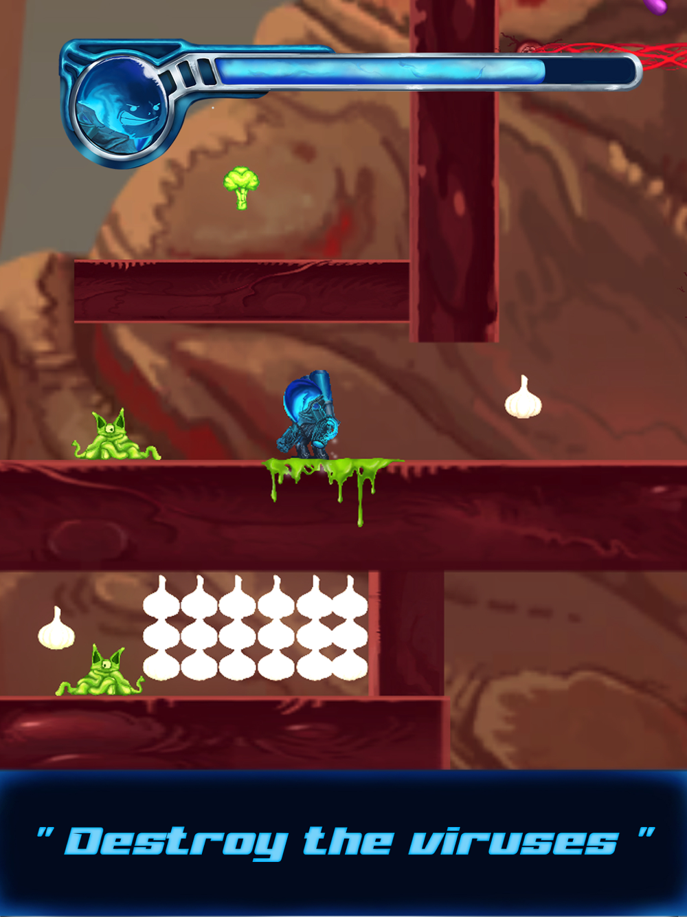 As the immune system's champion, you'll be boosted with body weapons and vaccines to help you fight monsters and avoid obstacles as fast as you can. Collect boosters and vaccines along the way to enhance your abilities and unlock new weapons and upgrades.