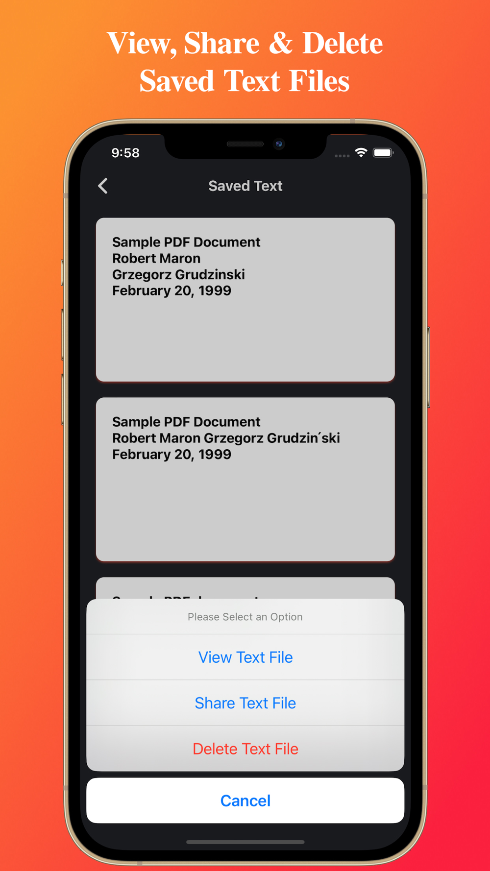 Users can convert his PDF Files to text files using Text Converter: PDF & Speech app