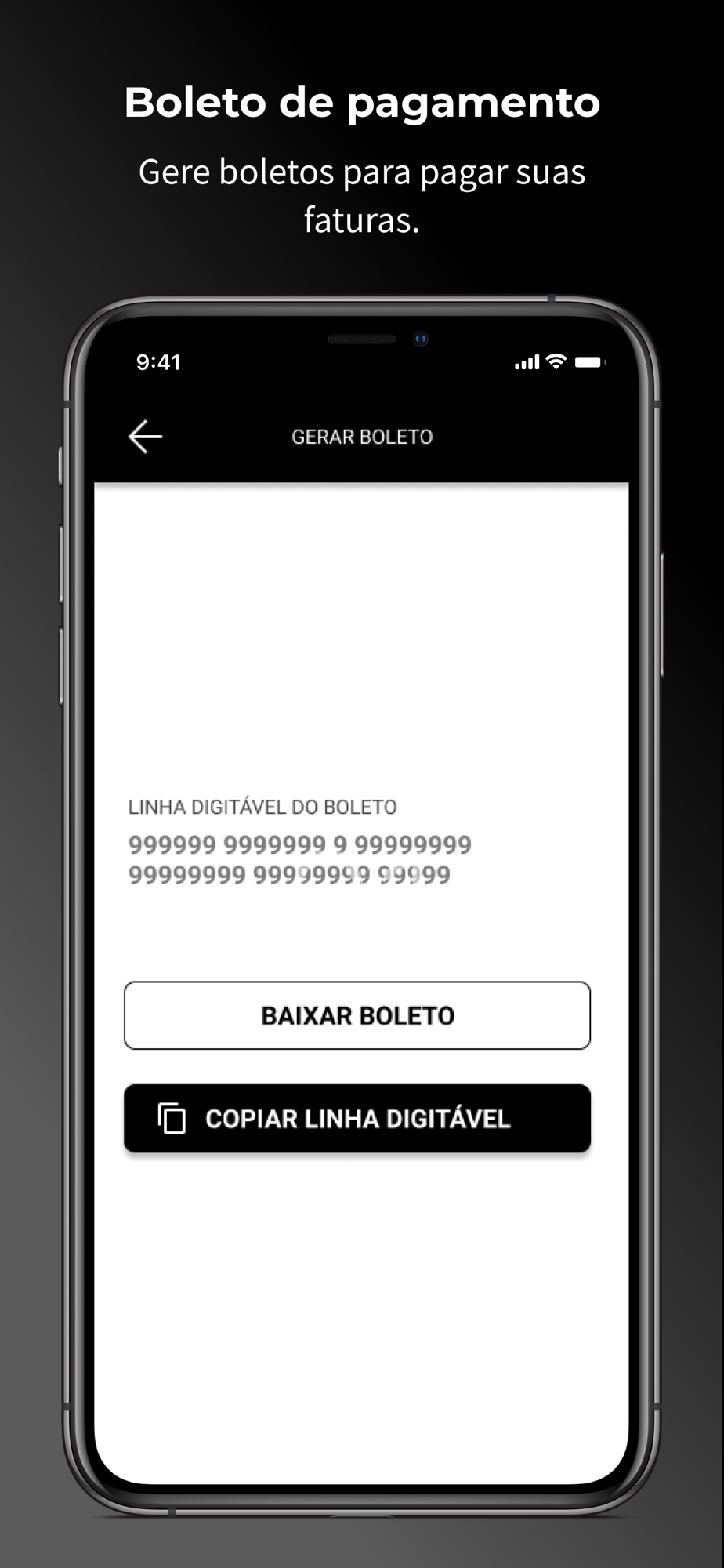 • Ver detalhes das faturas e gerar boleto para pagá-las;