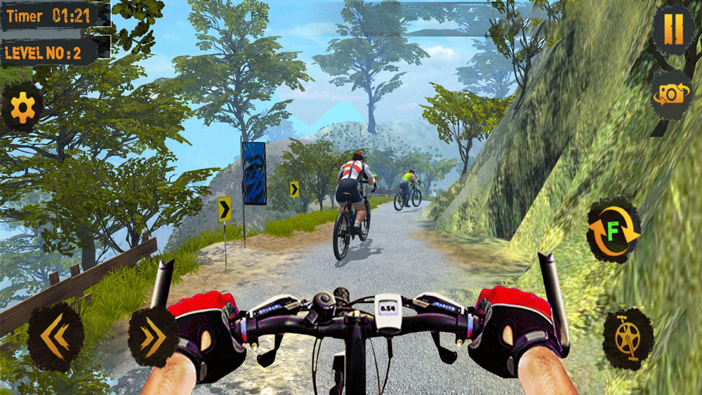 - Simple easy controls in the natural mountain environment of a bicycle racing game