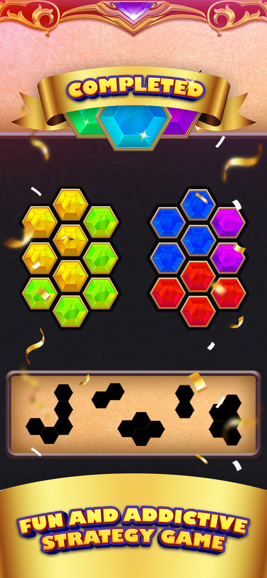 • Hexa Block Puzzle is free at all, Clear level to collect hints and unlock locked modes.