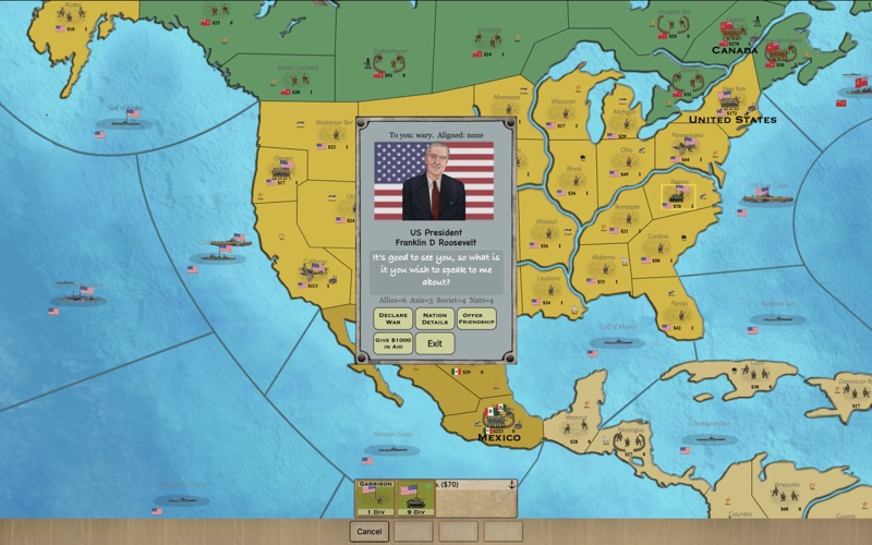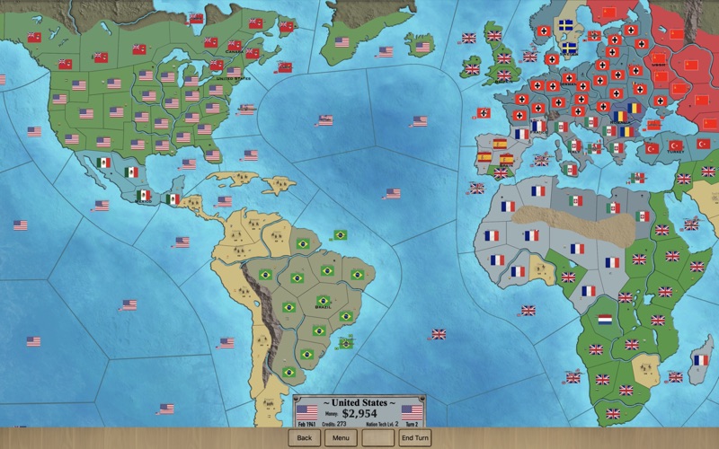 World at War (WW2) is a turn-based game pitting the various major and minor powers against each other. This war game is based on the WW2 conflict and plays through scenarios that increase in difficulty and complexity. Use your land, air and sea forces to spread and dominate the world. As one of the major powers, you can recruit minor countries or conquer any country standing in your way to victory.