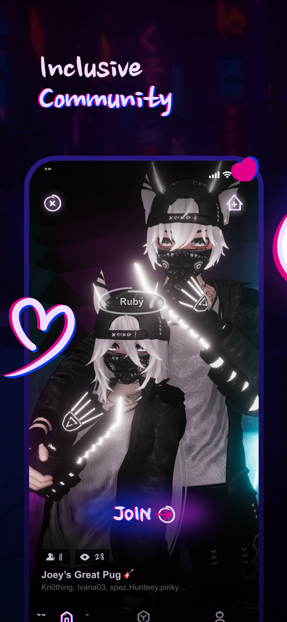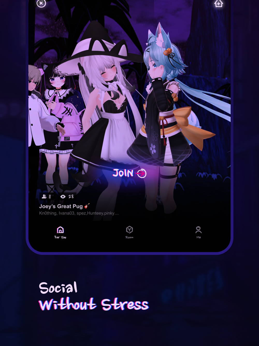 Toy around with your identity. With hundreds of avatars to choose from and a dressing room with a big mirror. You can try out anime, furry, cute avatars in privacy before you go out.