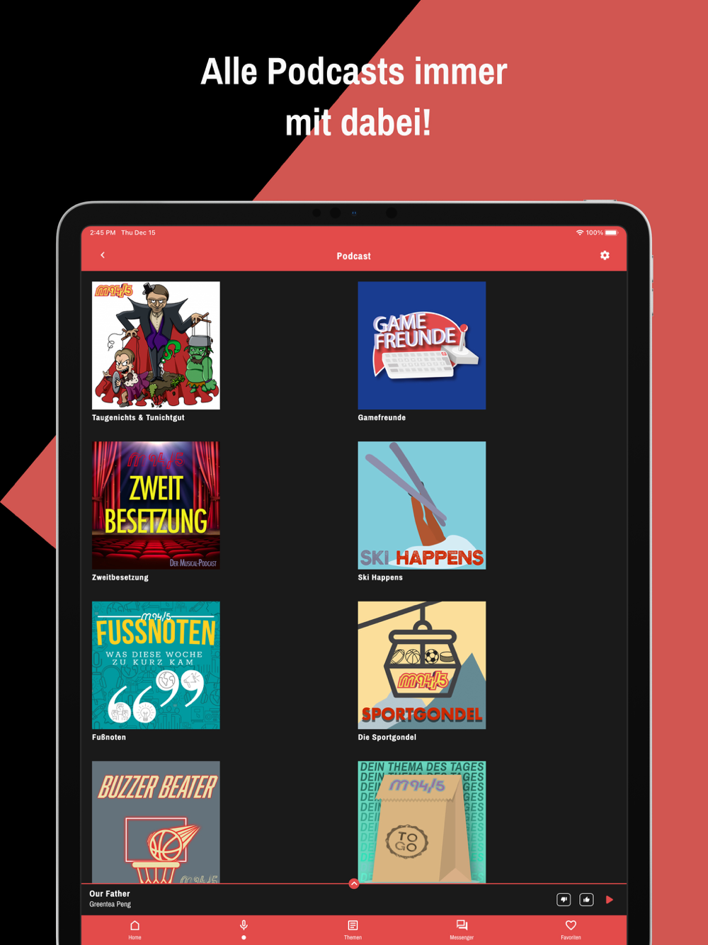 Alle M94.5 Podcasts auf deinem Smartphone, immer abrufbar. Du hast Angst, die neuste Folge zu verpassen? Dann schalte die Benachrichtigungen für deine Lieblingspodcasts ein!