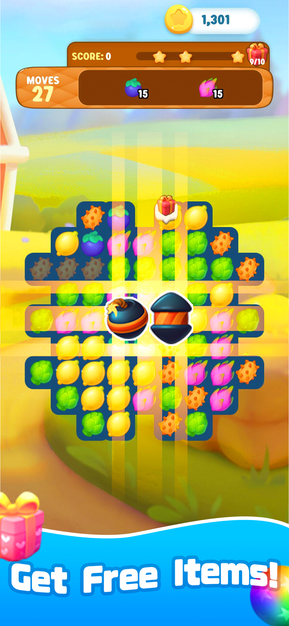 - Each level has different elimination goals, including fruit type and fruit quantity