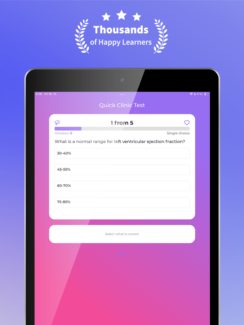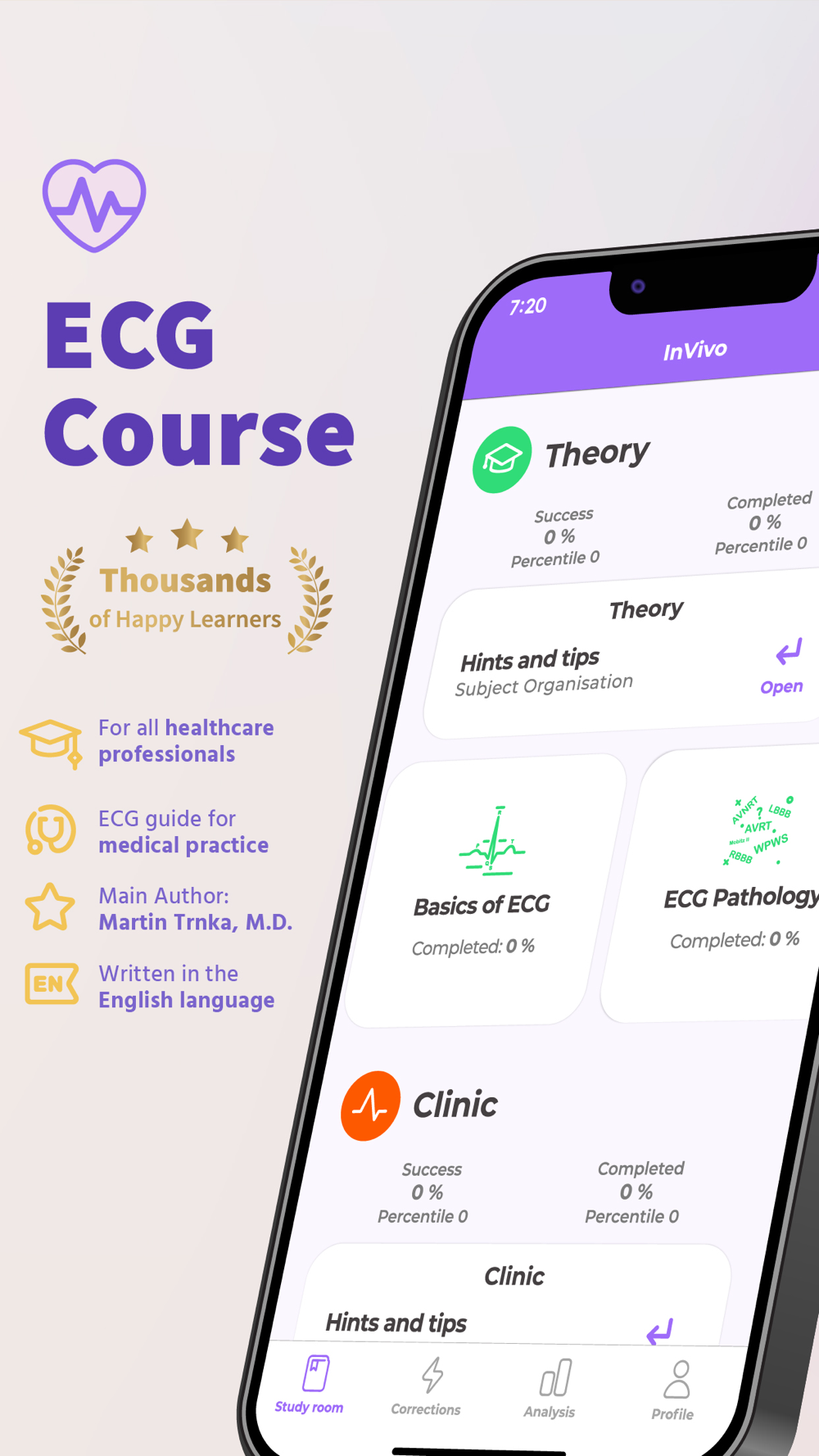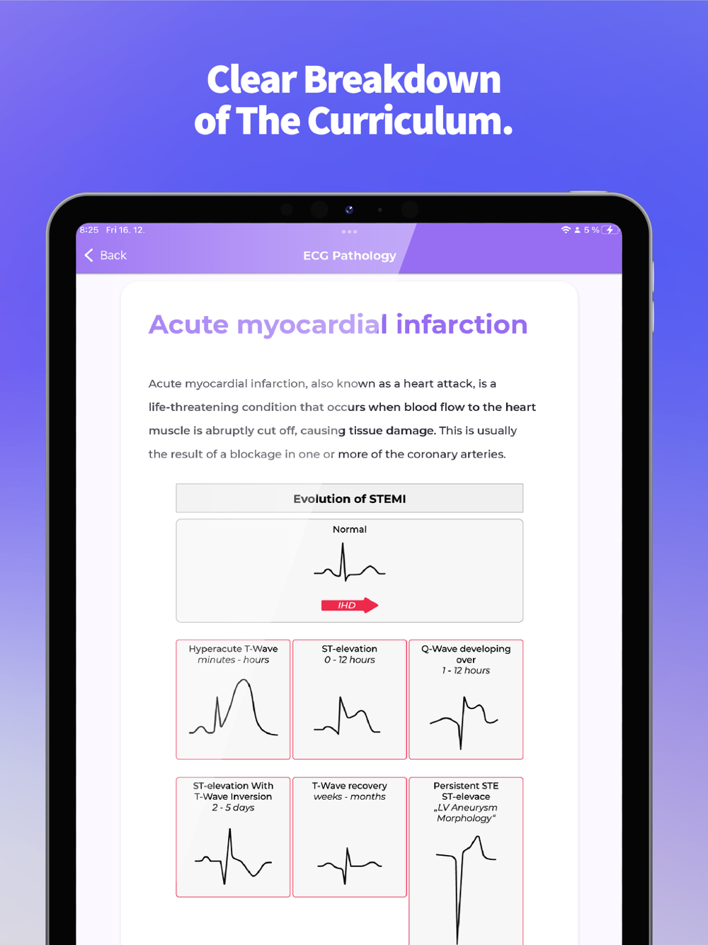 Unlike traditional textbooks, the ECG app offers a comprehensive platform that breaks down the complexities of ECGs into easy-to-follow chapters. Each chapter contains tutorials and a set of model questions that allow you to test your knowledge and track your progress. The app also includes an Analysis section that provides an anonymous comparison of your test results with other users.