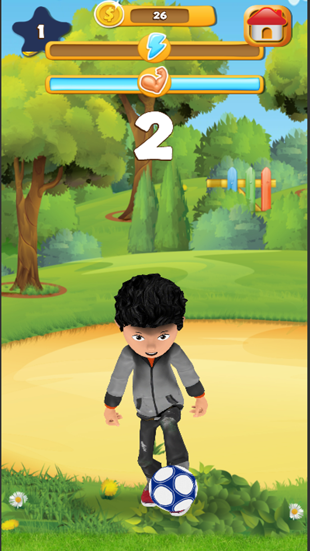 Play football juggle game and learn the new football tricks with the boy. Tap and juggle ball on feet.